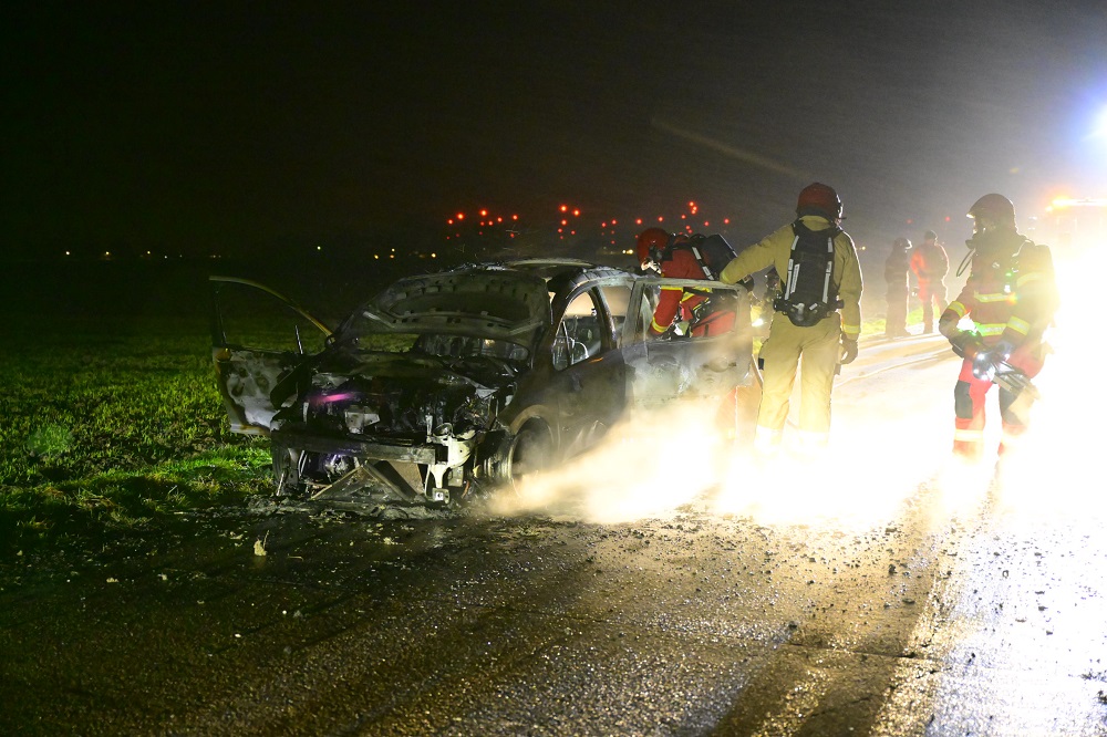 De bestuurder merkte rookontwikkeling tijdens het rijden en zette de auto op tijd stil. Kort daarna stond het voertuig volledig in brand.