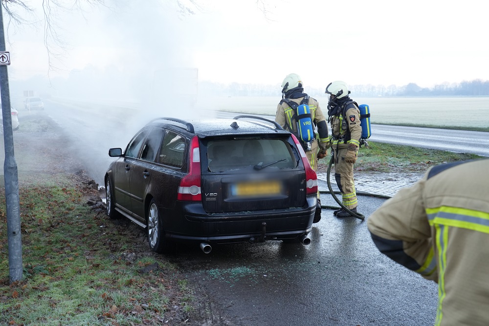 Auto vliegt in brand, veel schade aan motorcompartiment