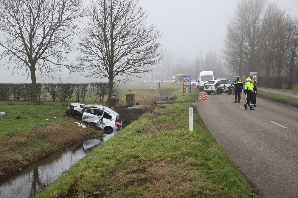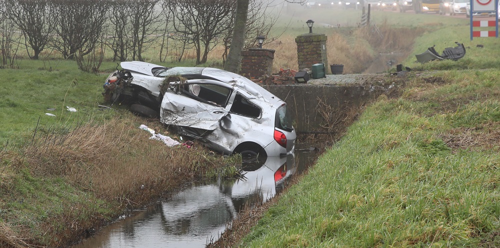 De automobilist verloor met hoge snelheid de controle over zijn voertuig, vloog uit de bocht en belandde in een sloot. Hulpdiensten kwamen massaal ter plaatse.