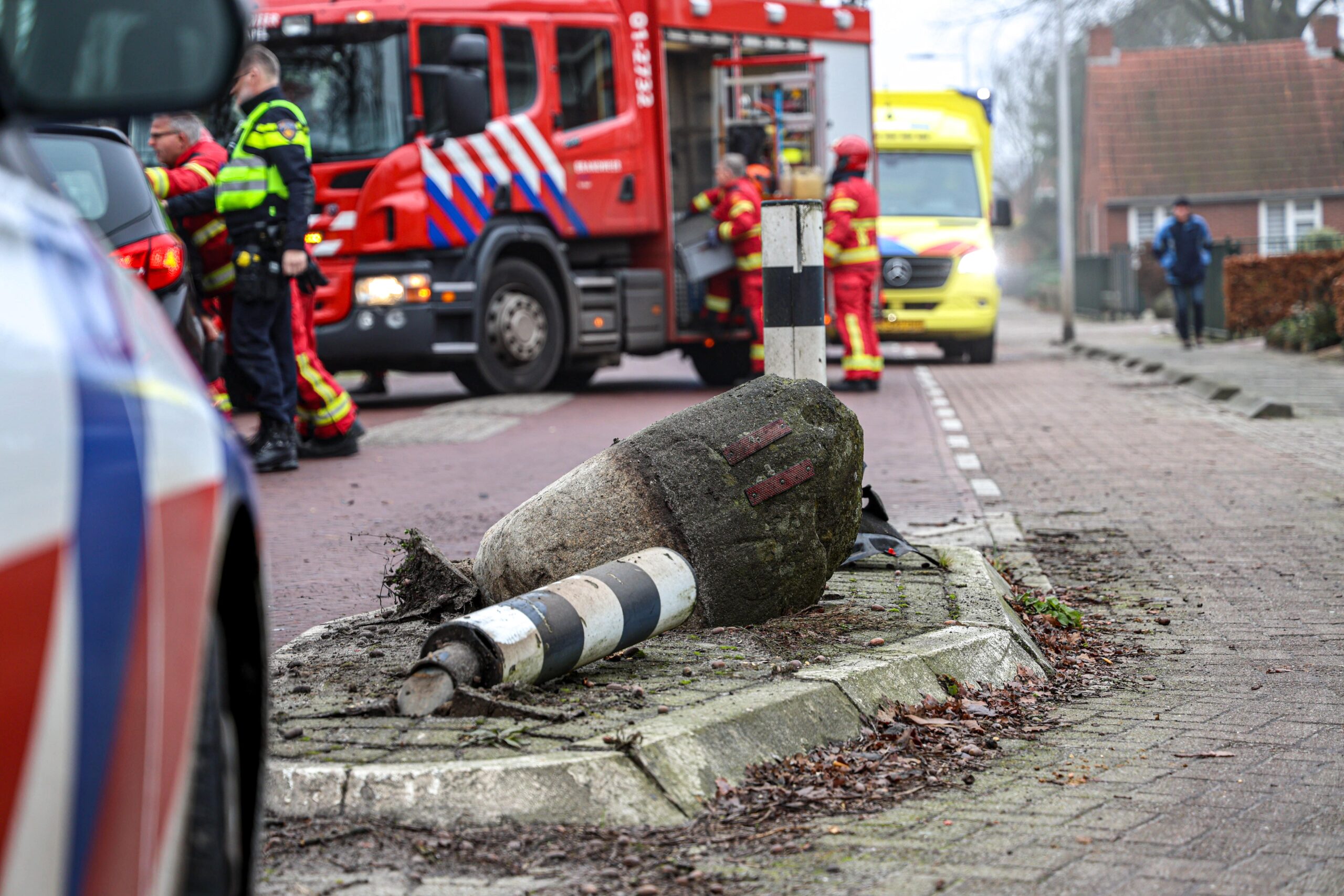 Bestuurder ramt paal en een zwerfkei
