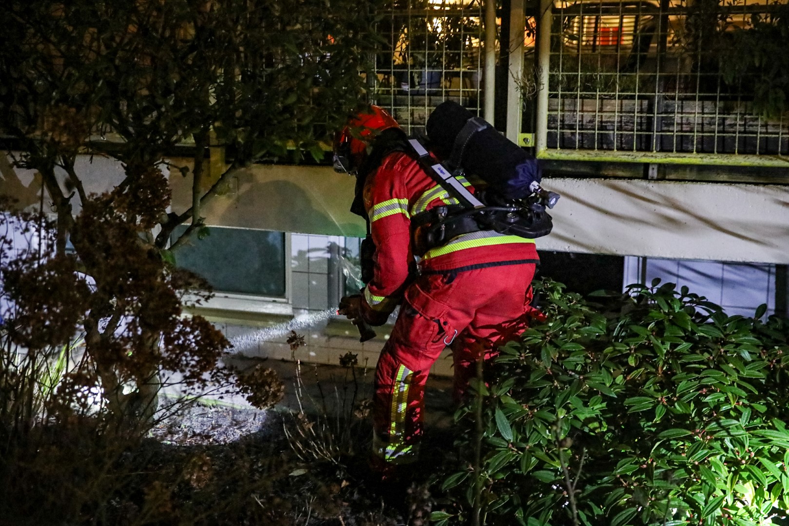 Veel bewoners van de flat kwamen buiten een kijkje nemen vanwege alle commotie.