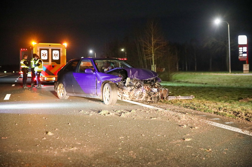 Een auto raakte een betonnen puntstuk en botste daarna tegen de vangrail. De bestuurder werd door ambulancepersoneel gecontroleerd, maar hoefde niet naar het ziekenhuis.