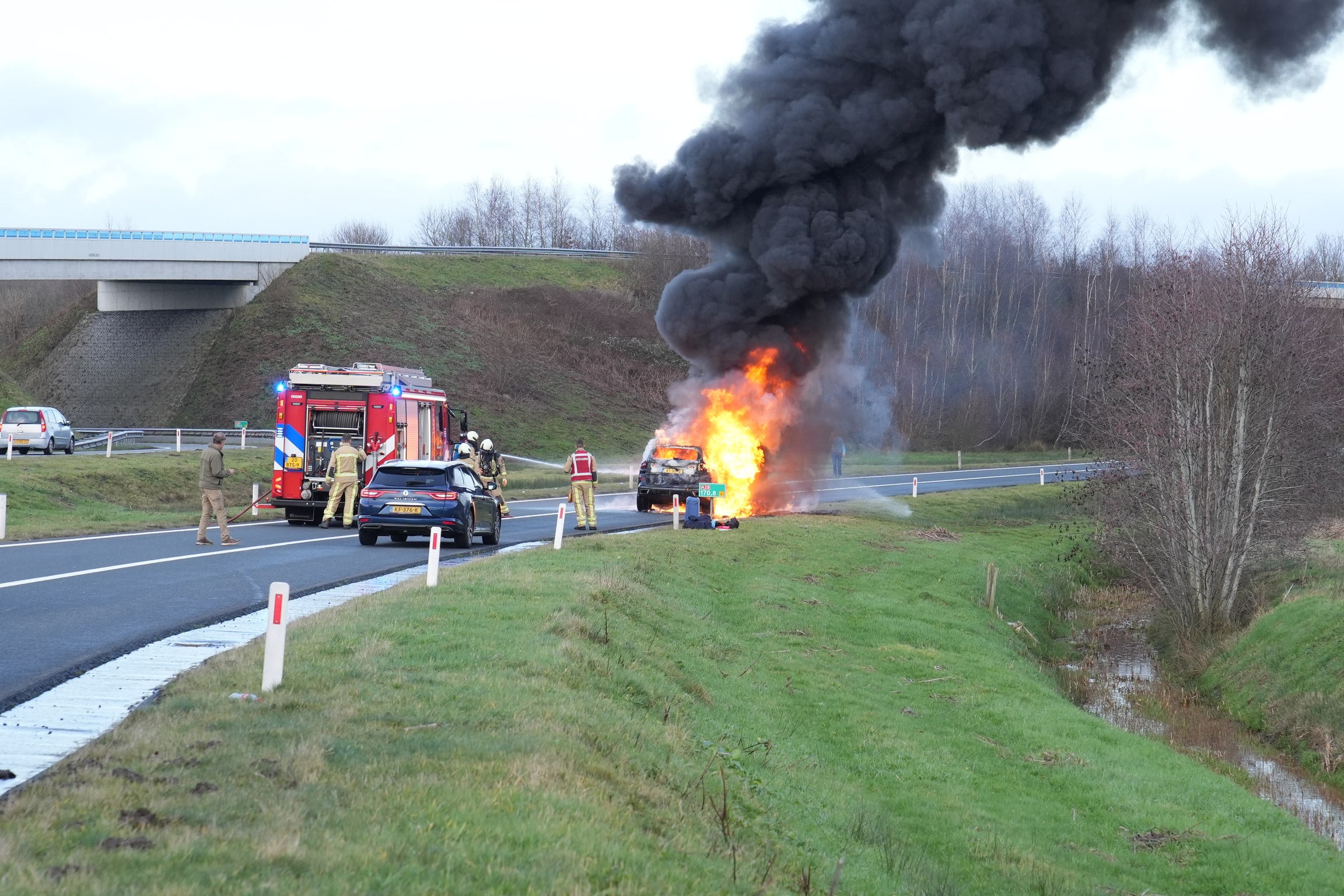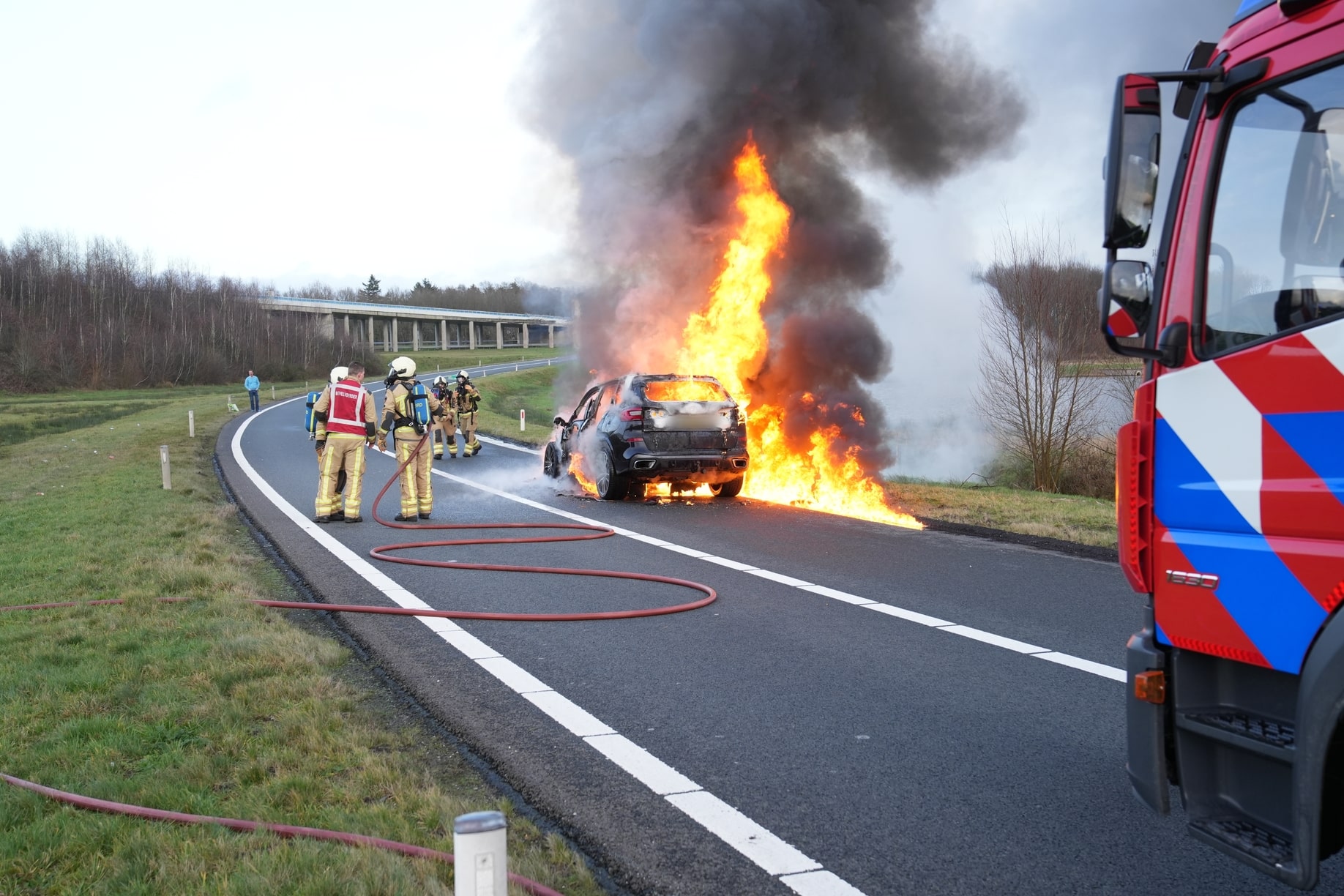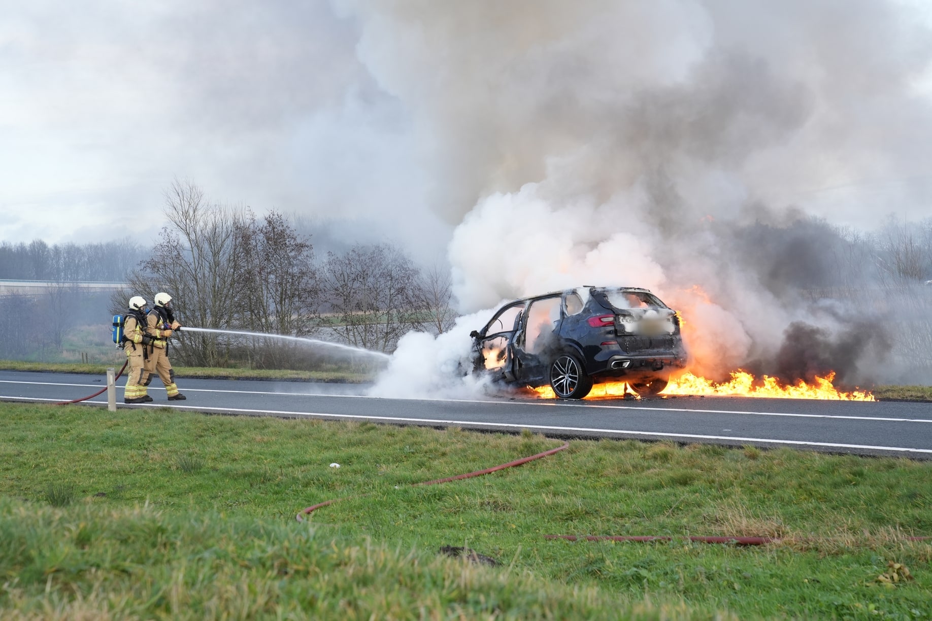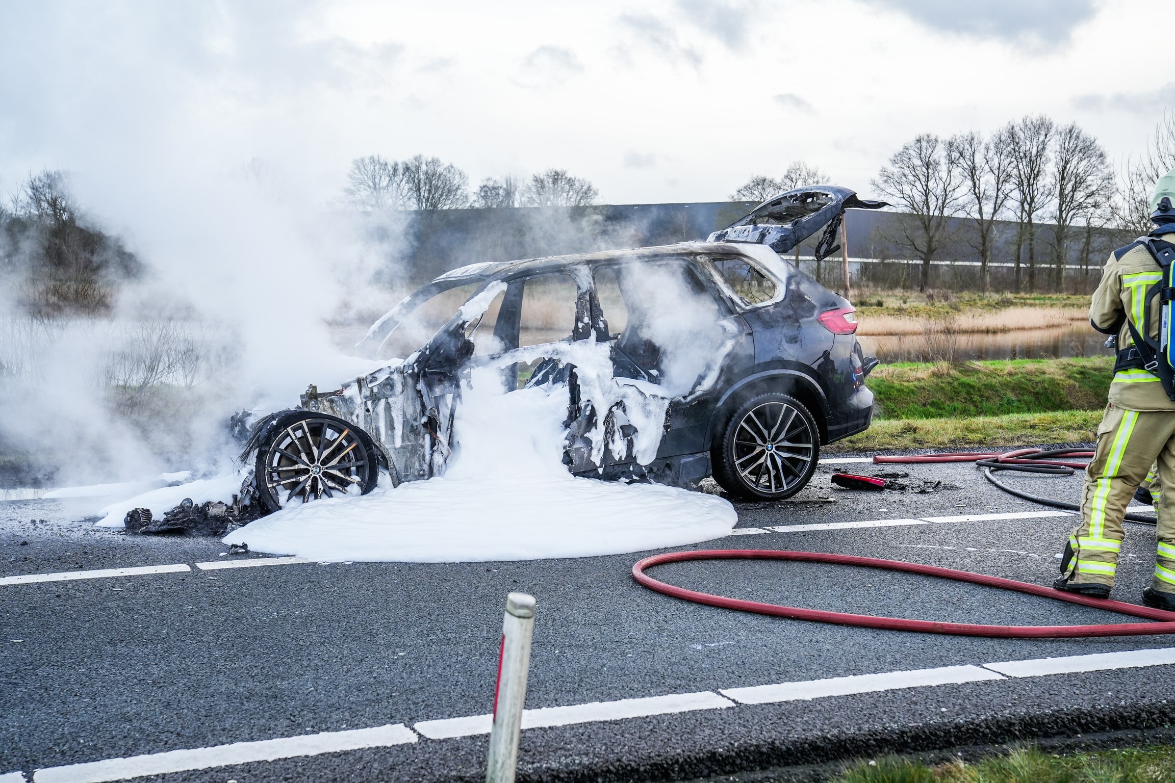 Bij aankomst van de brandweer stond het voertuig al volledig in brand. Hoewel de brandweer snel ingreep, liep de auto onherstelbare schade op. Het voertuig vatte tijdens het rijden vlam. Niemand raakte gewond.