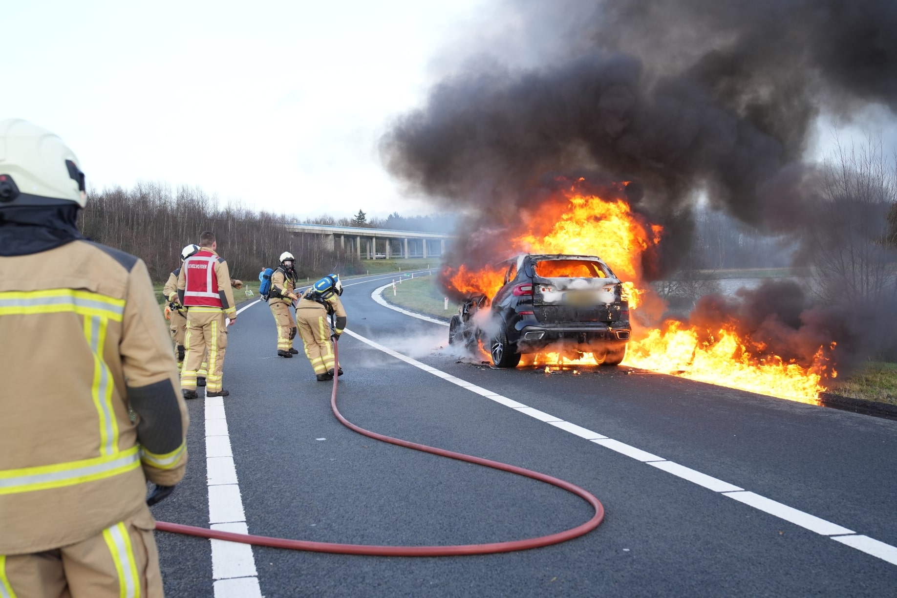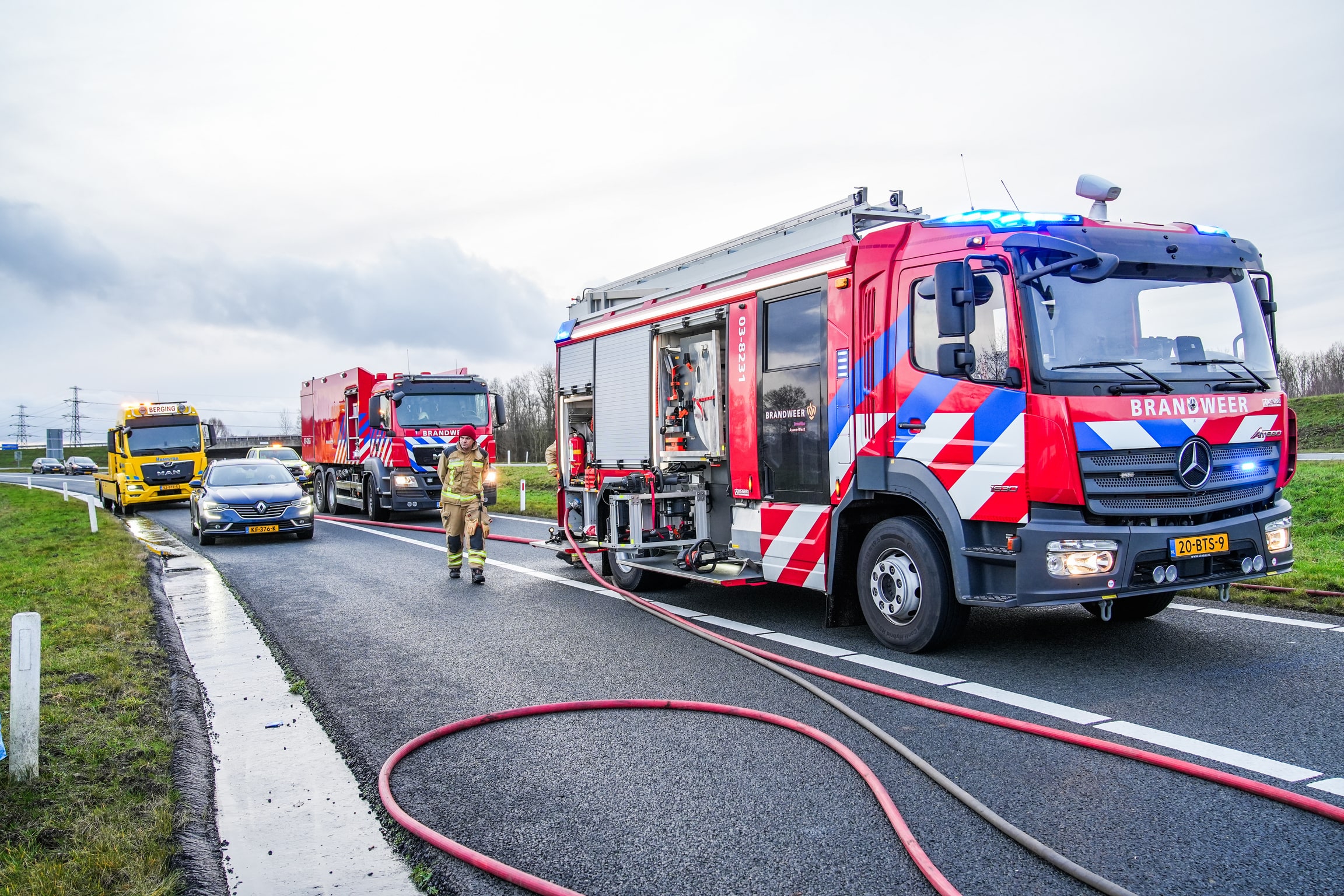 De lus is tijdelijk afgesloten voor verkeer, en een bergingsbedrijf is ingeschakeld om de auto te verwijderen. De brandweer had moeite om de vlammen volledig te blussen. Het voertuig is volledig uitgebrand.