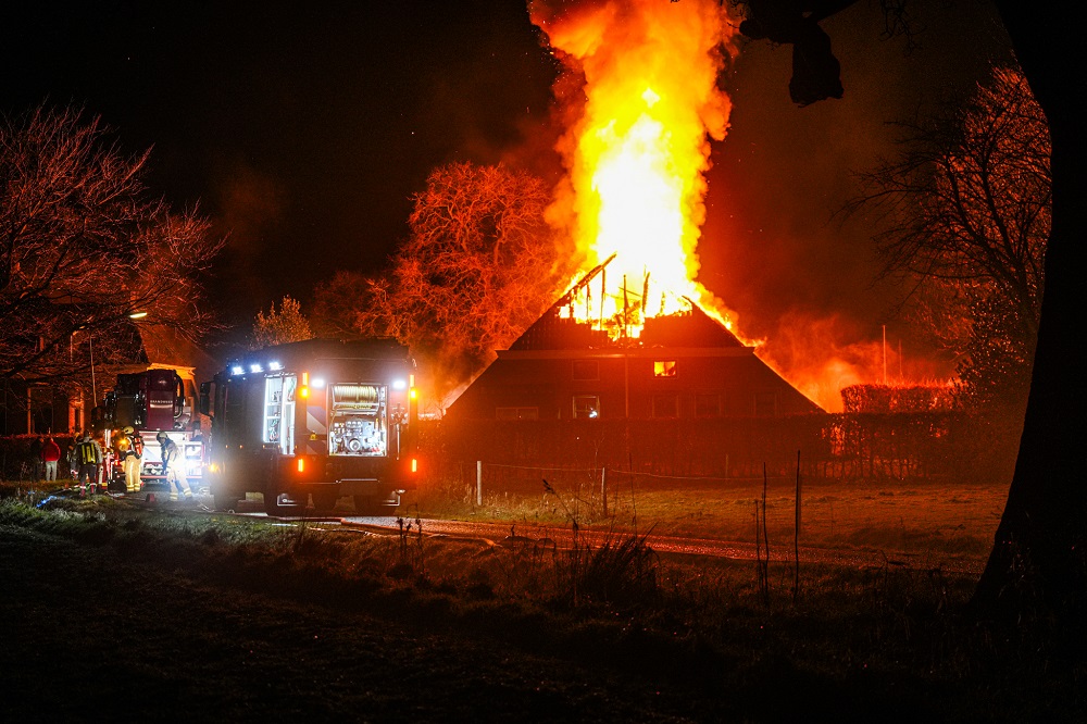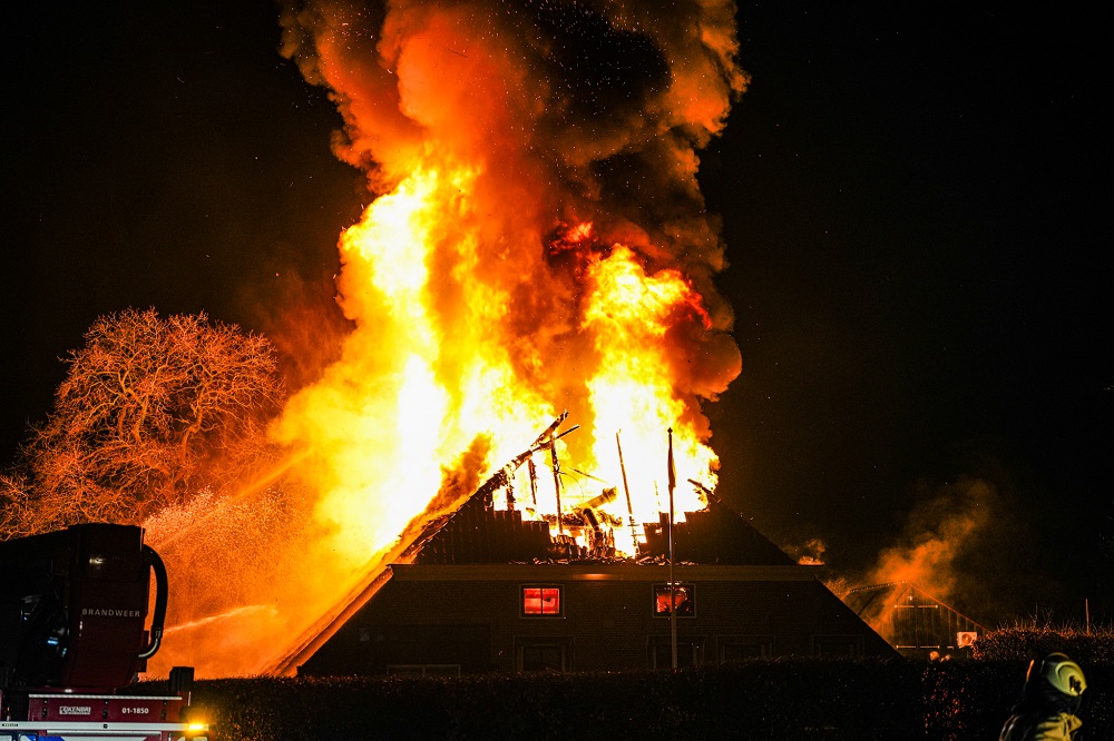 Geplaatst op 12 januari 2025, om 21:33 uurWINDE – Maandagavond is een rietgedekte woonboerderij aan De Steeg volledig verloren gegaan door een uitslaande brand.