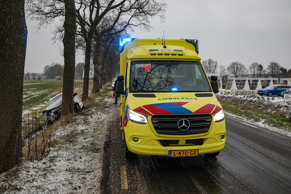 De bestuurder raakte gewond en wordt ter plaatse behandeld door ambulancepersoneel.
