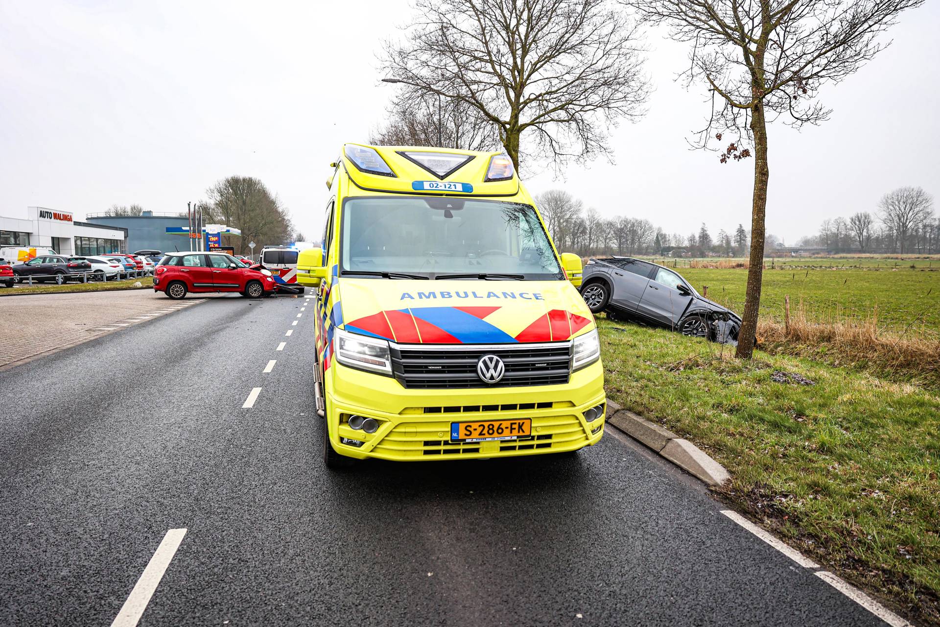 Auto komt in greppel terecht bij botsing in Heerenveen