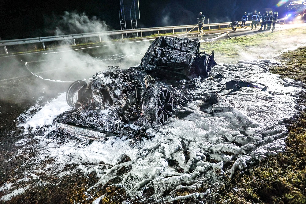 Auto vliegt in brand net over de grens, Nederlander op tijd eruit