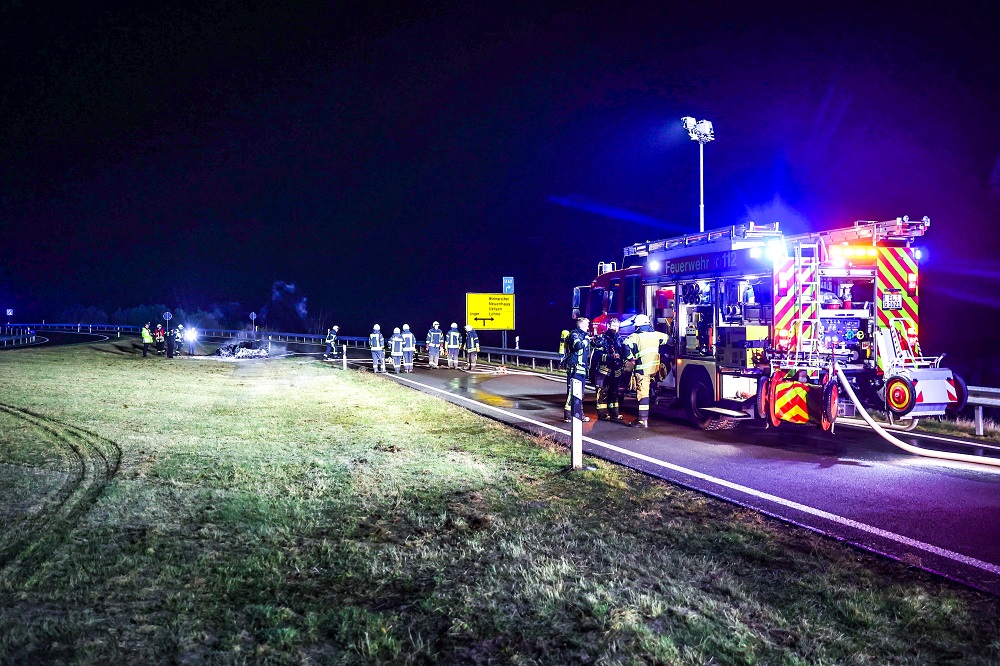 Brandweerkorpsen uit Twist en Groß Hesepe blusten het vuur. De politie sloot de afrit volledig af.