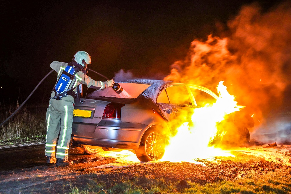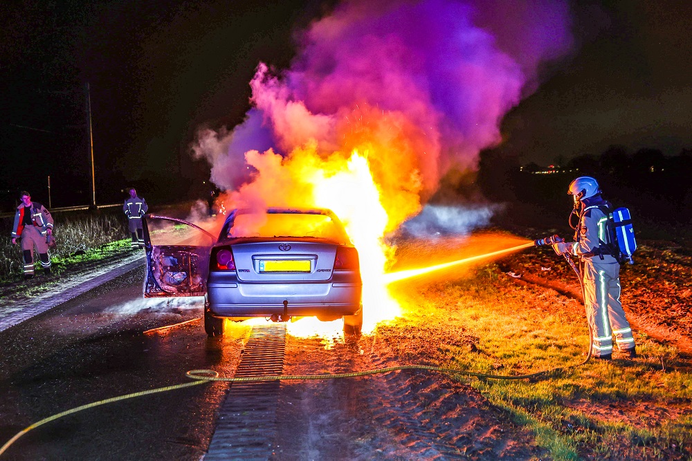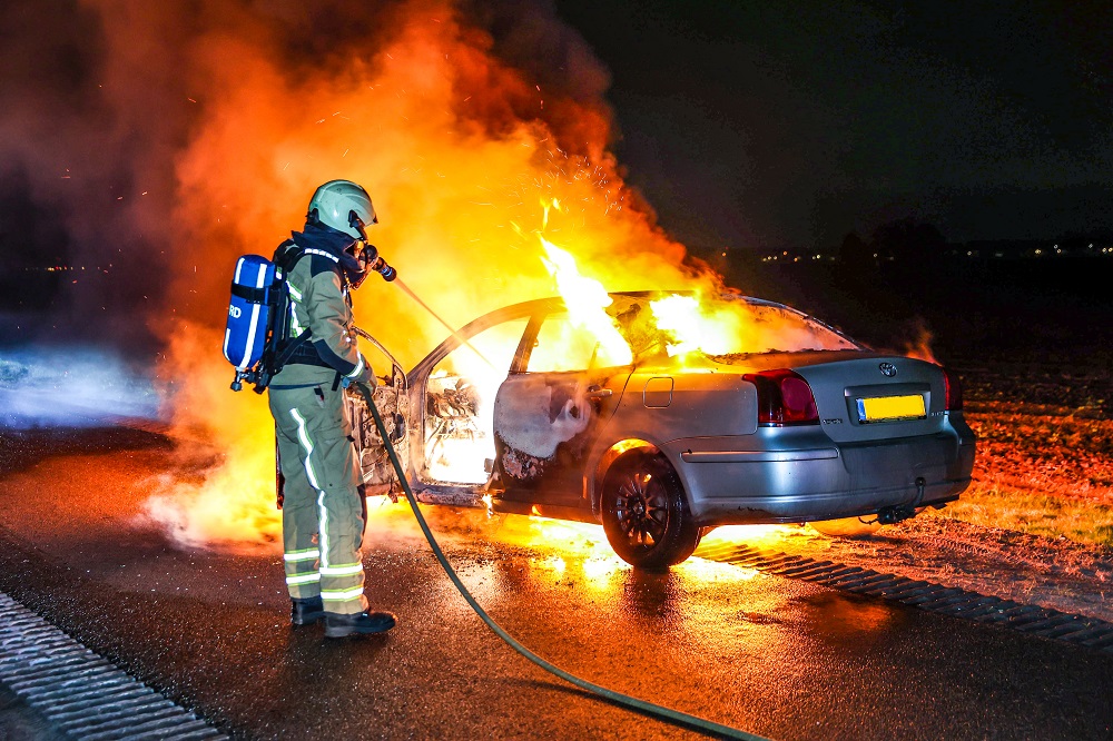 Auto vliegt in brand tijdens het rijden, bestuurder op tijd in veiligheid