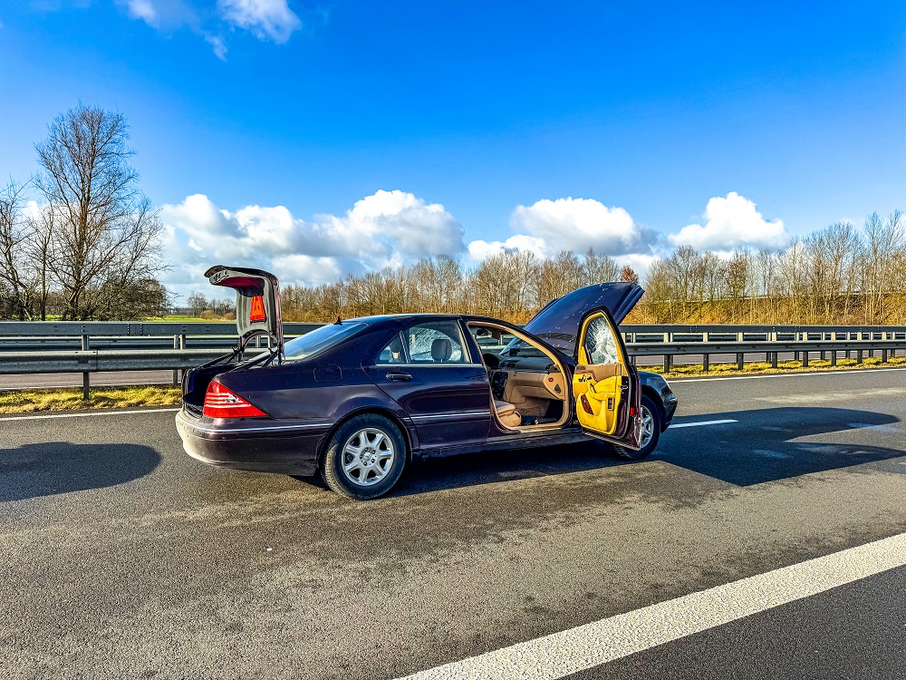 Tijdens de achtervolging raakten meerdere politieauto’s en het Nederlandse voertuig beschadigd. De auto, die tientallen kogelgaten opliep, had kapotte ruiten en lekke banden.