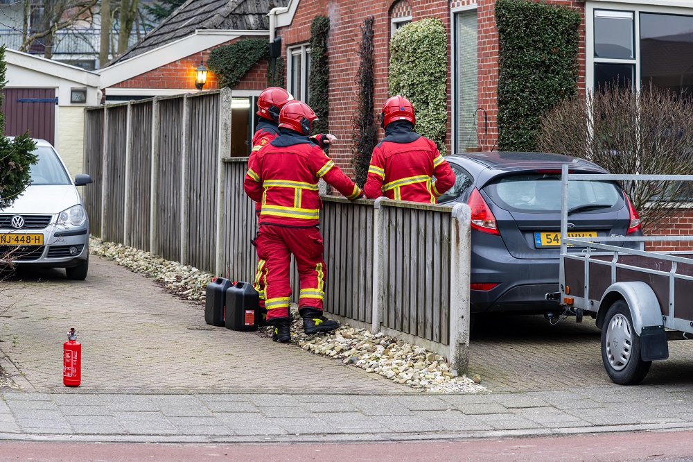 De politie nam ter plaatse twee jerrycans met een vermoedelijk brandbare vloeistof in beslag. De brandweer heeft het pand geventileerd.