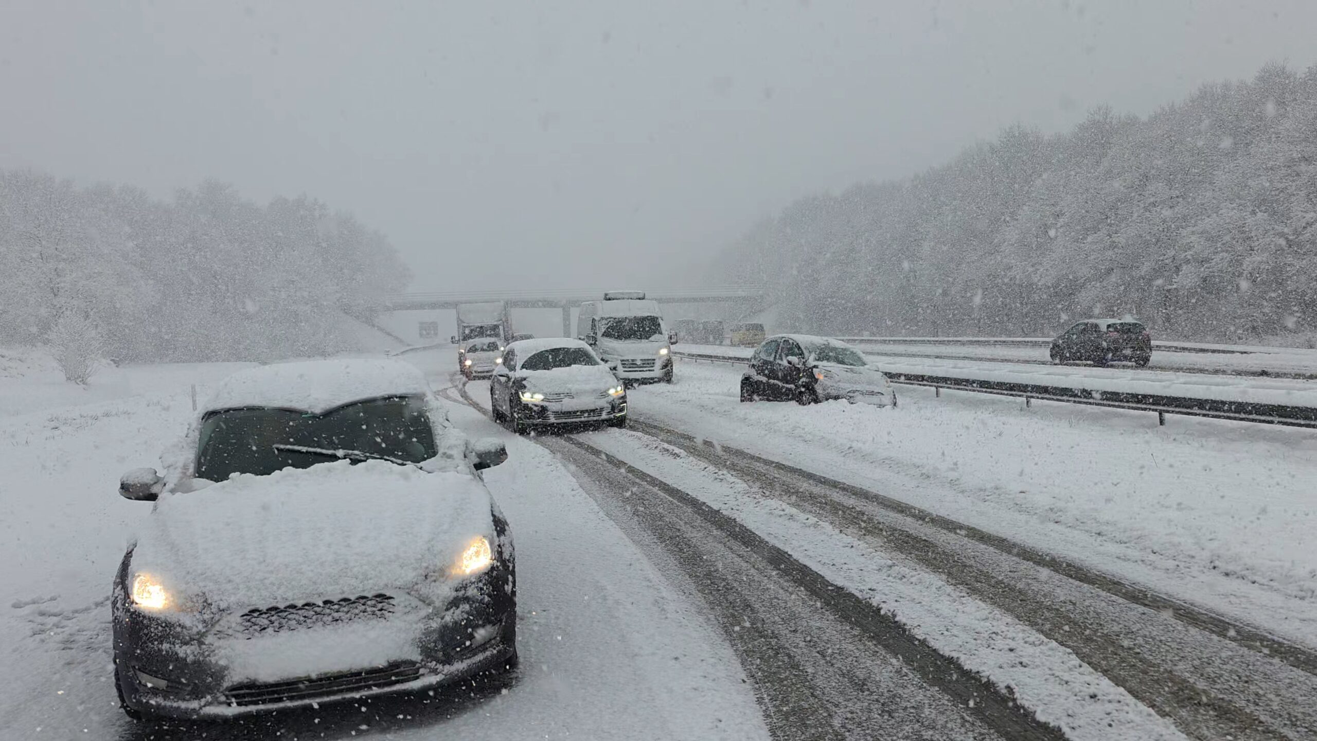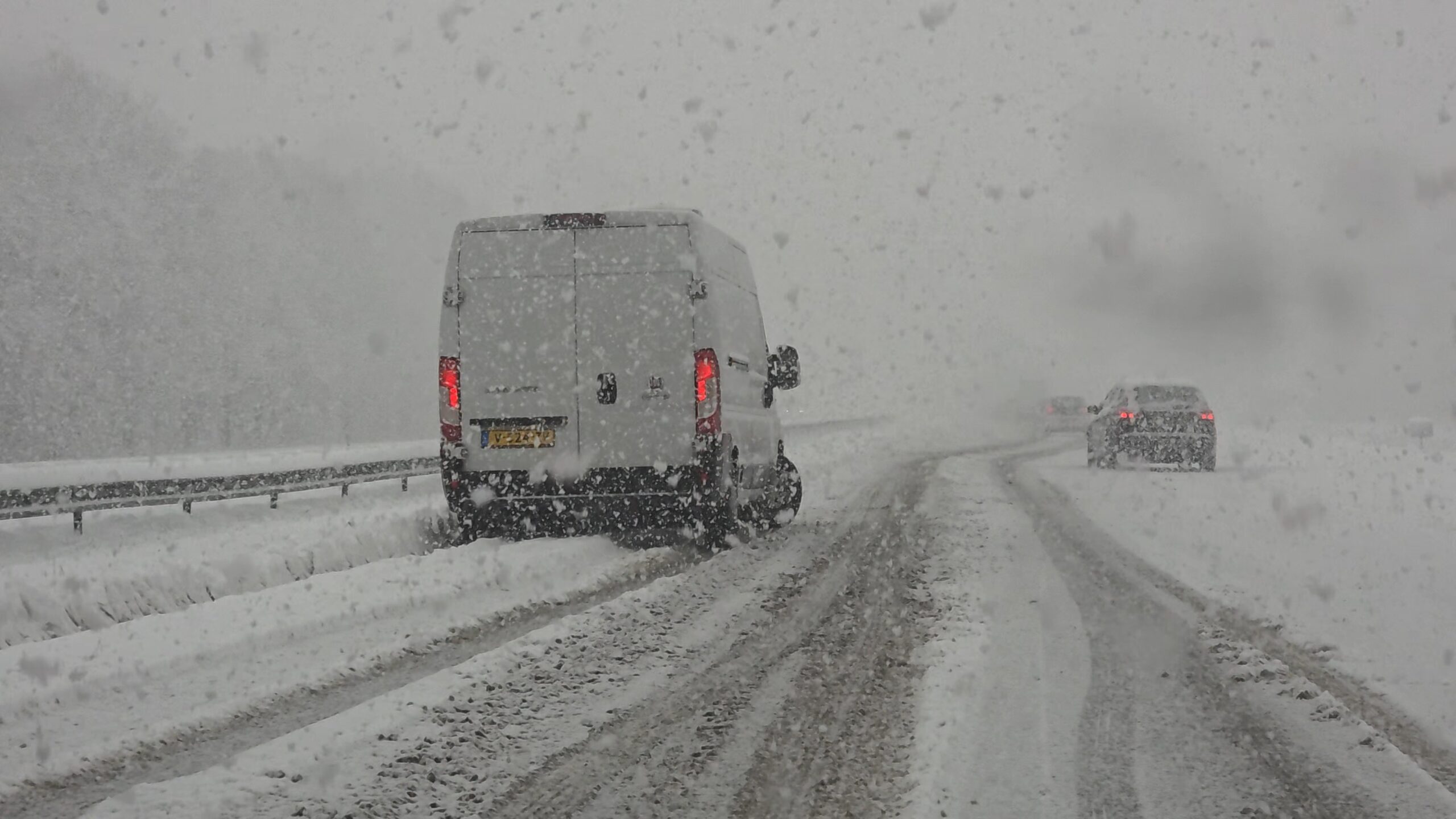 Snelweg volledig ondergesneeuwd en onbegaanbaar, meerdere ongevallen gebeurd