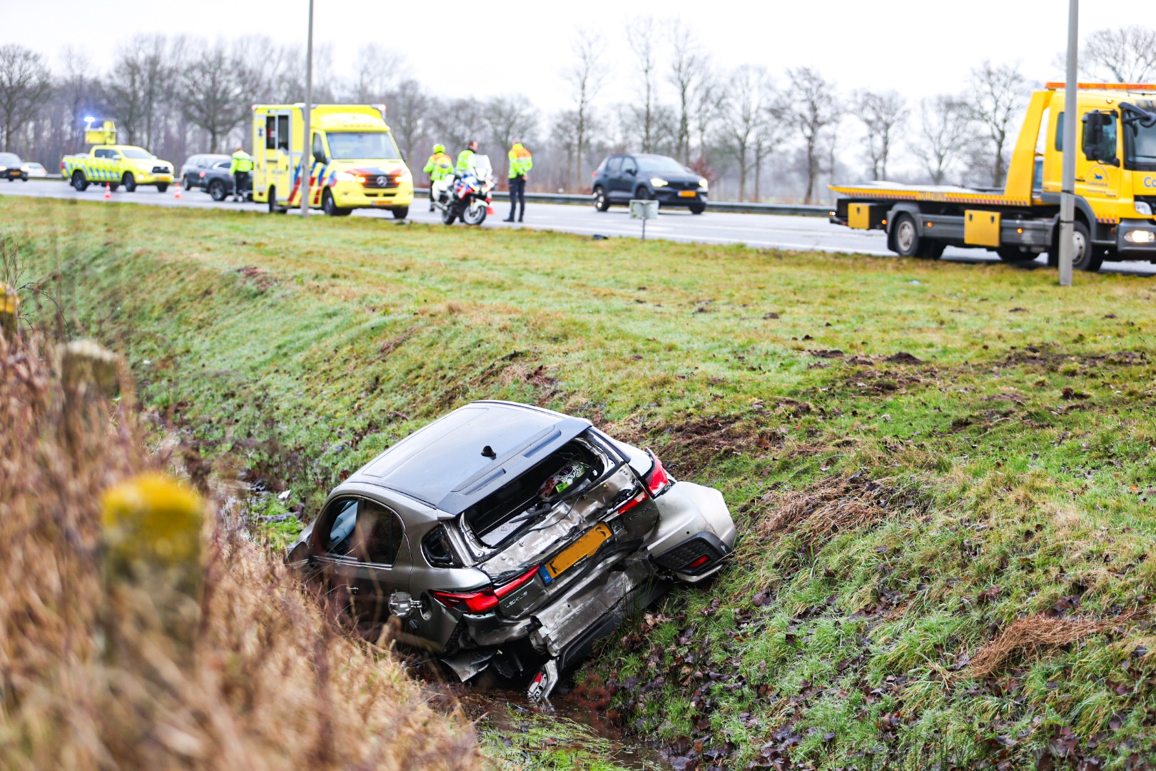 Twee ambulances kwamen ter plaatse om betrokkenen te controleren op verwondingen. Het ongeval zorgde voor flinke verkeersvertraging.