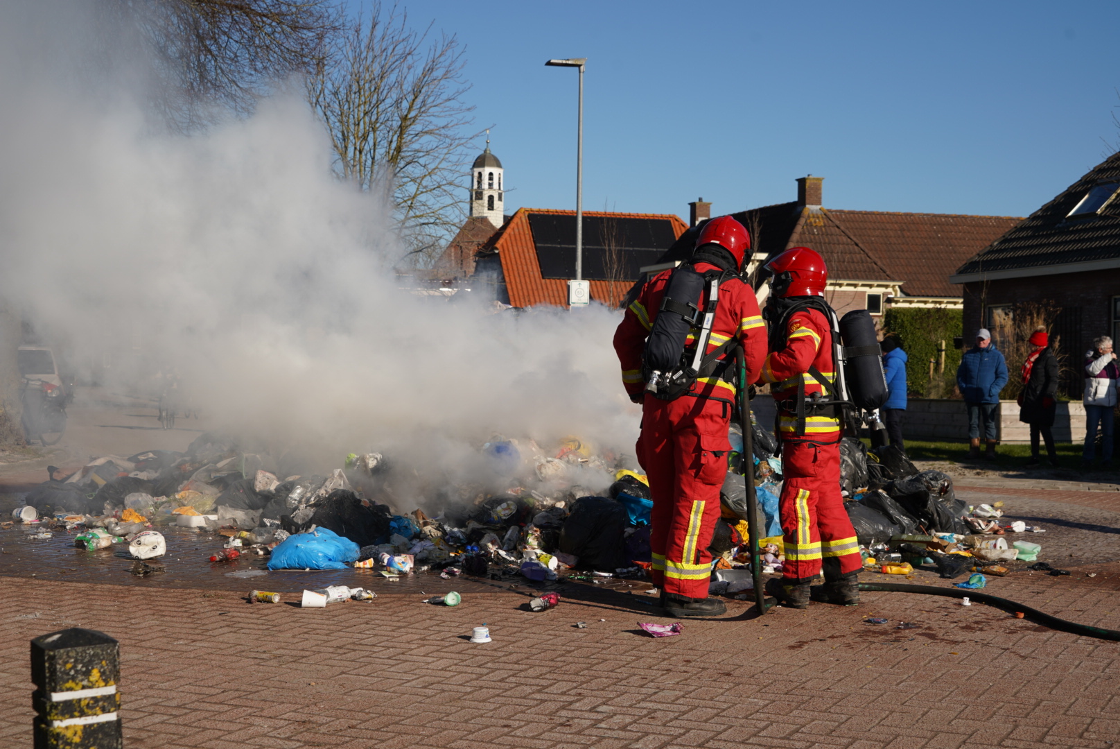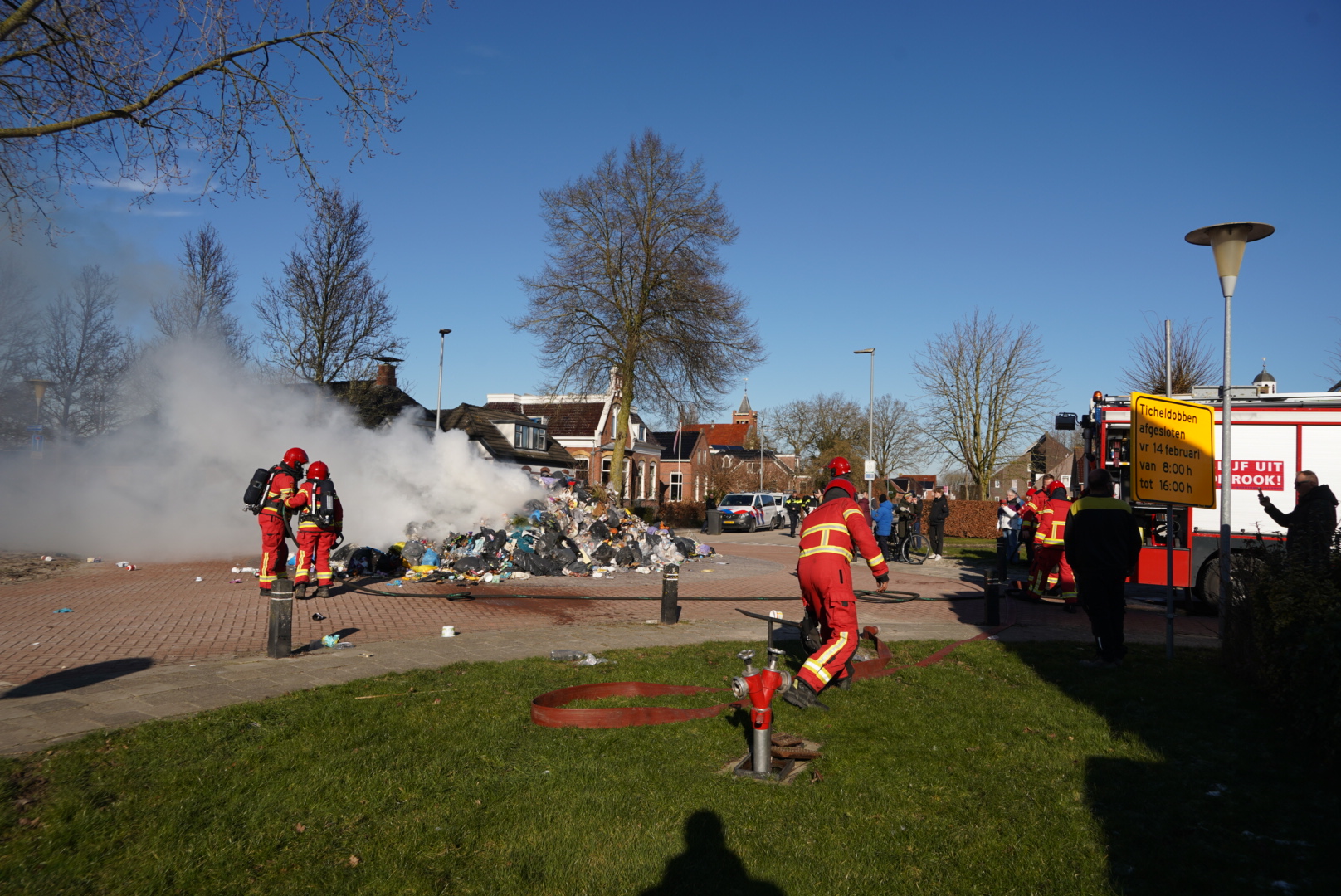 De brandweer werd rond 14:10 uur opgeroepen en heeft de brandende afvalbult geblust. Een kraan werd ingezet om het afval uit elkaar te trekken en verdere smeulende resten te doven.