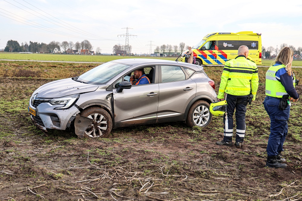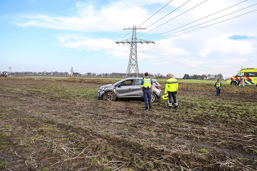 Auto belandt op akker, vrouw gewond