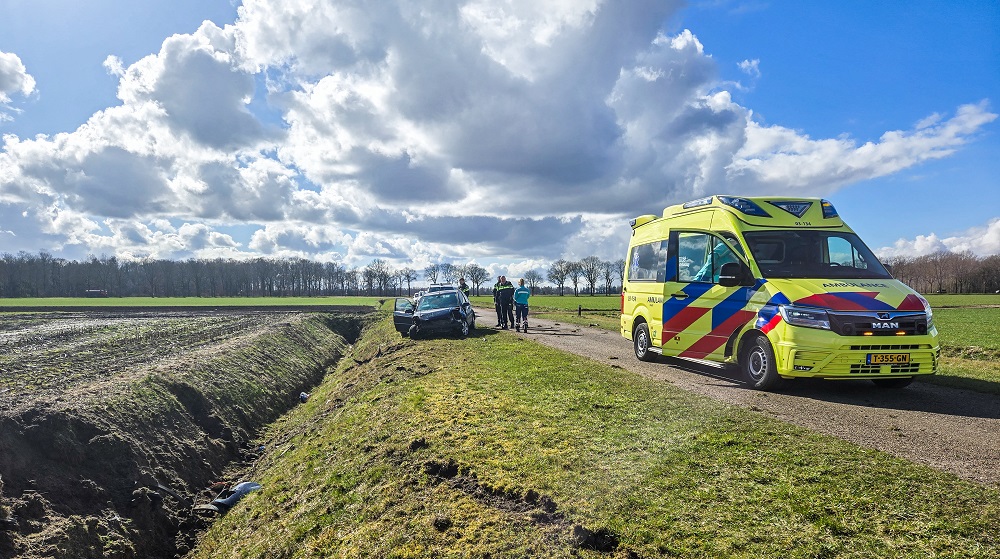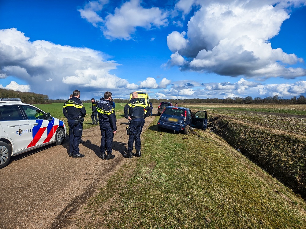 Een automobiliste raakte door nog onbekende oorzaak van de weg en belandde in een sloot. De klap was zo hard dat de auto uiteindelijk in de berm tot stilstand kwam. Hulpdiensten, waaronder de politie en een ambulance, kwamen ter plaatse.