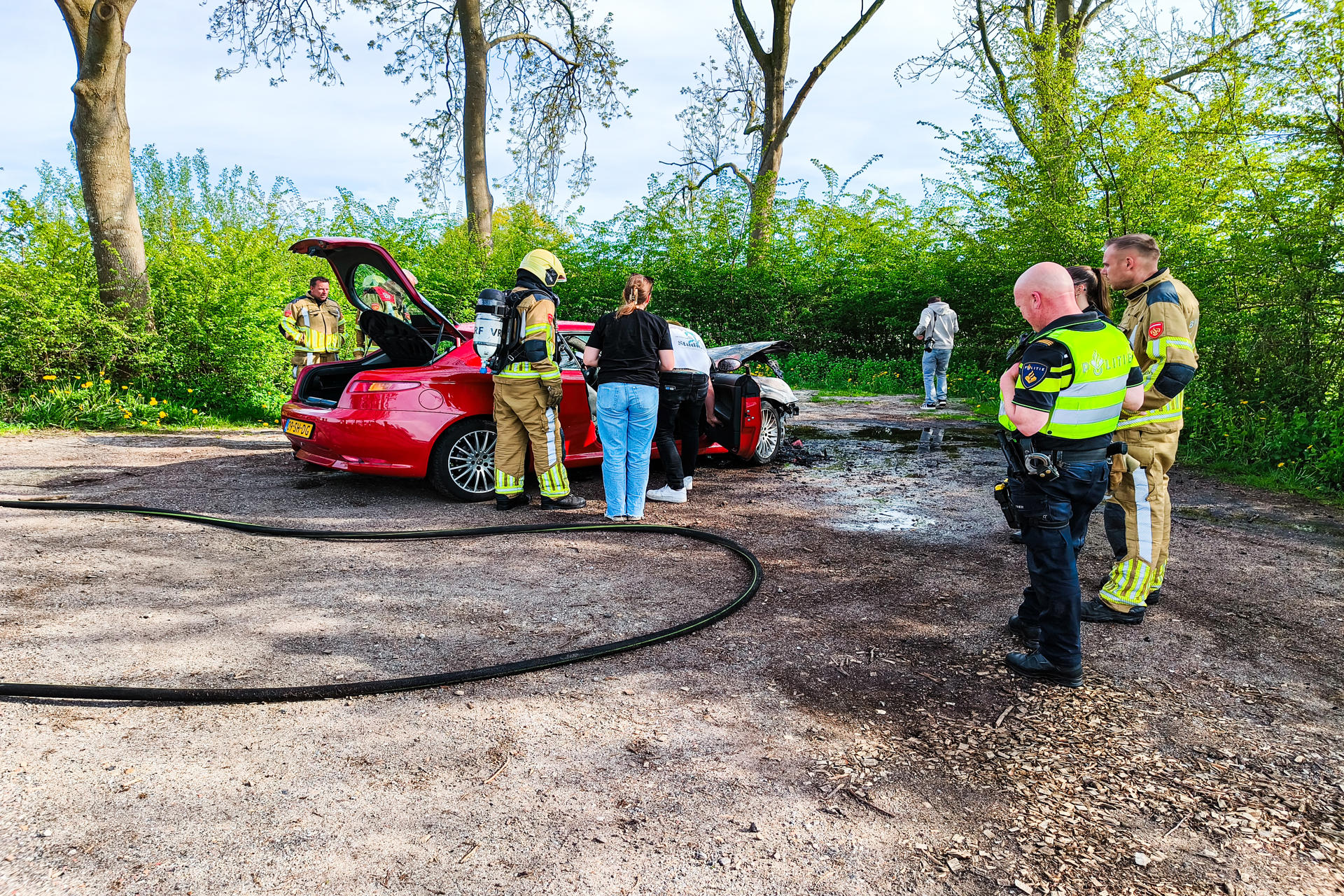 Kort daarna sloegen vlammen onder de motorkap vandaan, waarna de brandweer werd ingeschakeld. Bij aankomst stond de voorkant van het voertuig volledig in brand. De brandweerlieden kregen het vuur snel onder controle.