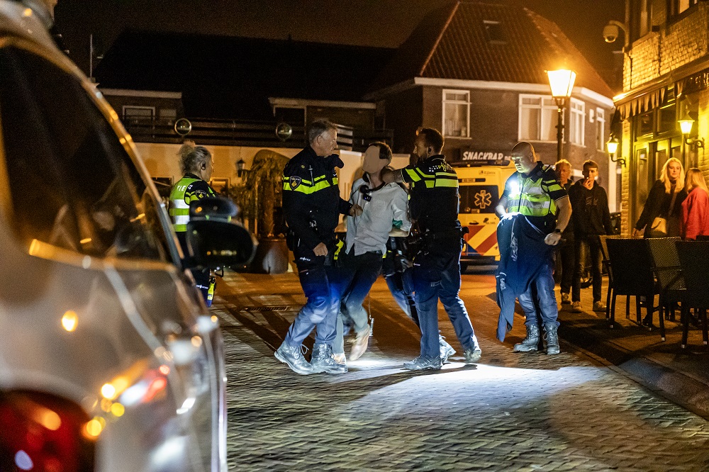 Volgens een getuige werd de verdachte uit een café verwijderd en zou daarbij iemand in het been hebben gestoken. Het slachtoffer liep licht letsel op en werd ter plaatse behandeld door ambulancepersoneel, maar hoefde niet naar het ziekenhuis.