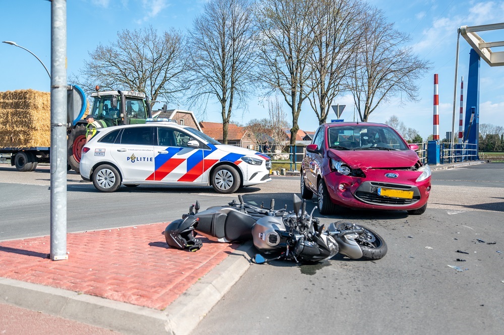 De motorrijdster kwam ten val en raakte gewond. Ze is in de ambulance onderzocht en wordt overgebracht naar het ziekenhuis. Over de ernst van haar verwondingen is nog niets bekend.