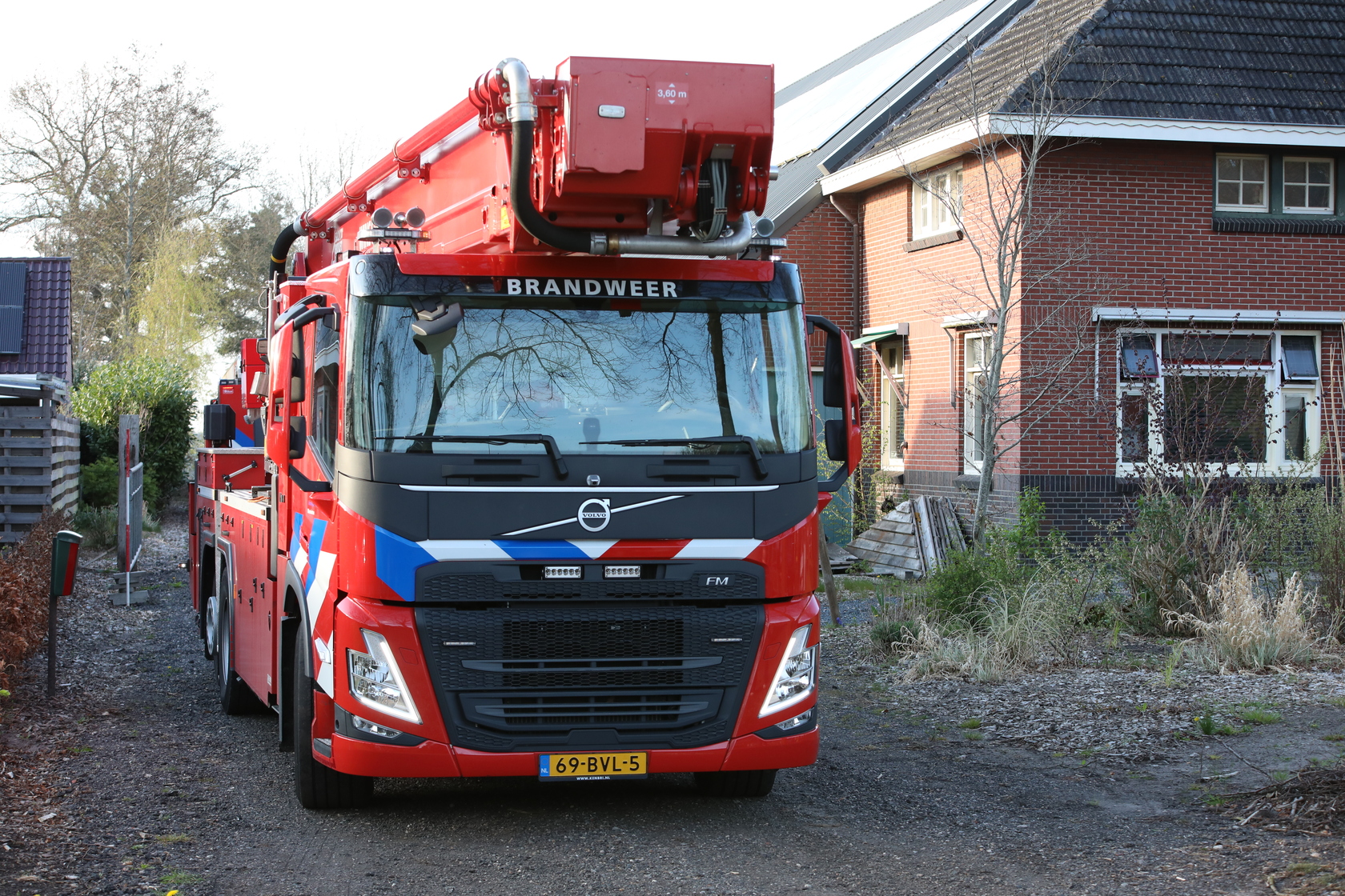 Twee tankautospuiten en een hoogwerker werden opgeroepen. De brand bevond zich aan de achterzijde van de woning, op de zolder van een schuur waar twee strobalen in brand stonden.