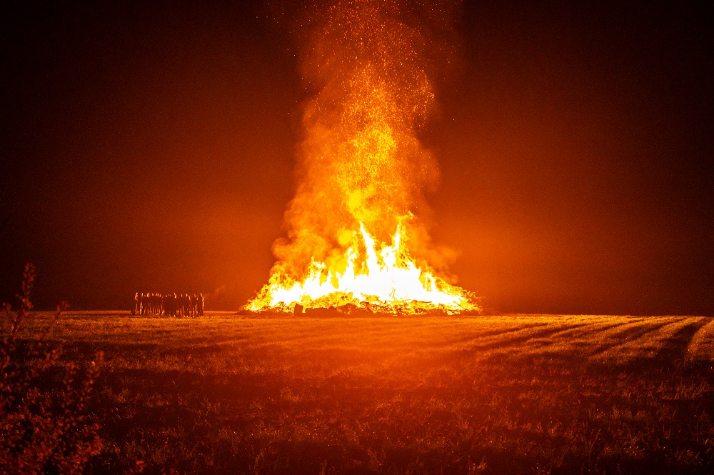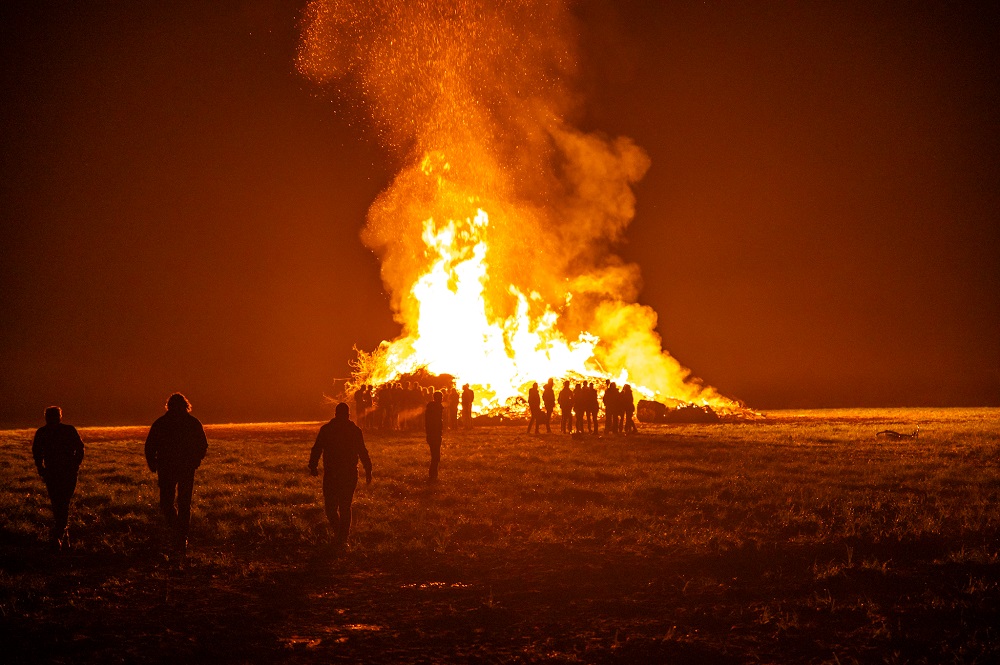 Omstanders zagen de grote vuurzee al van kilometers afstand en sloegen alarm. De brandweer gaf aan op de hoogte te zijn van de situatie, maar greep niet in. Vanwege het verhoogde risico op natuurbranden geldt in de provincie momenteel een verbod op paasvuren.