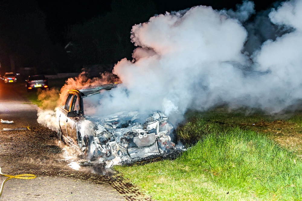Achtergelaten auto geheel uitgebrand
