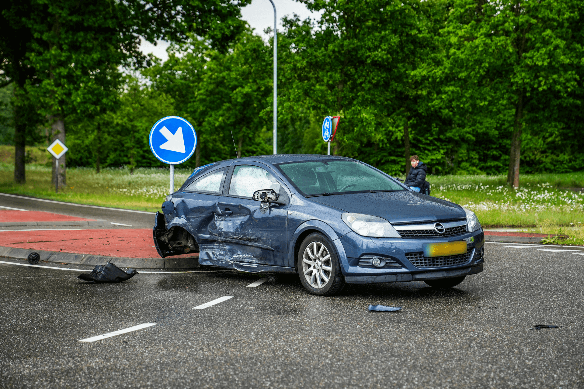 Auto belandt in sloot na aanrijding, één persoon naar ziekenhuis