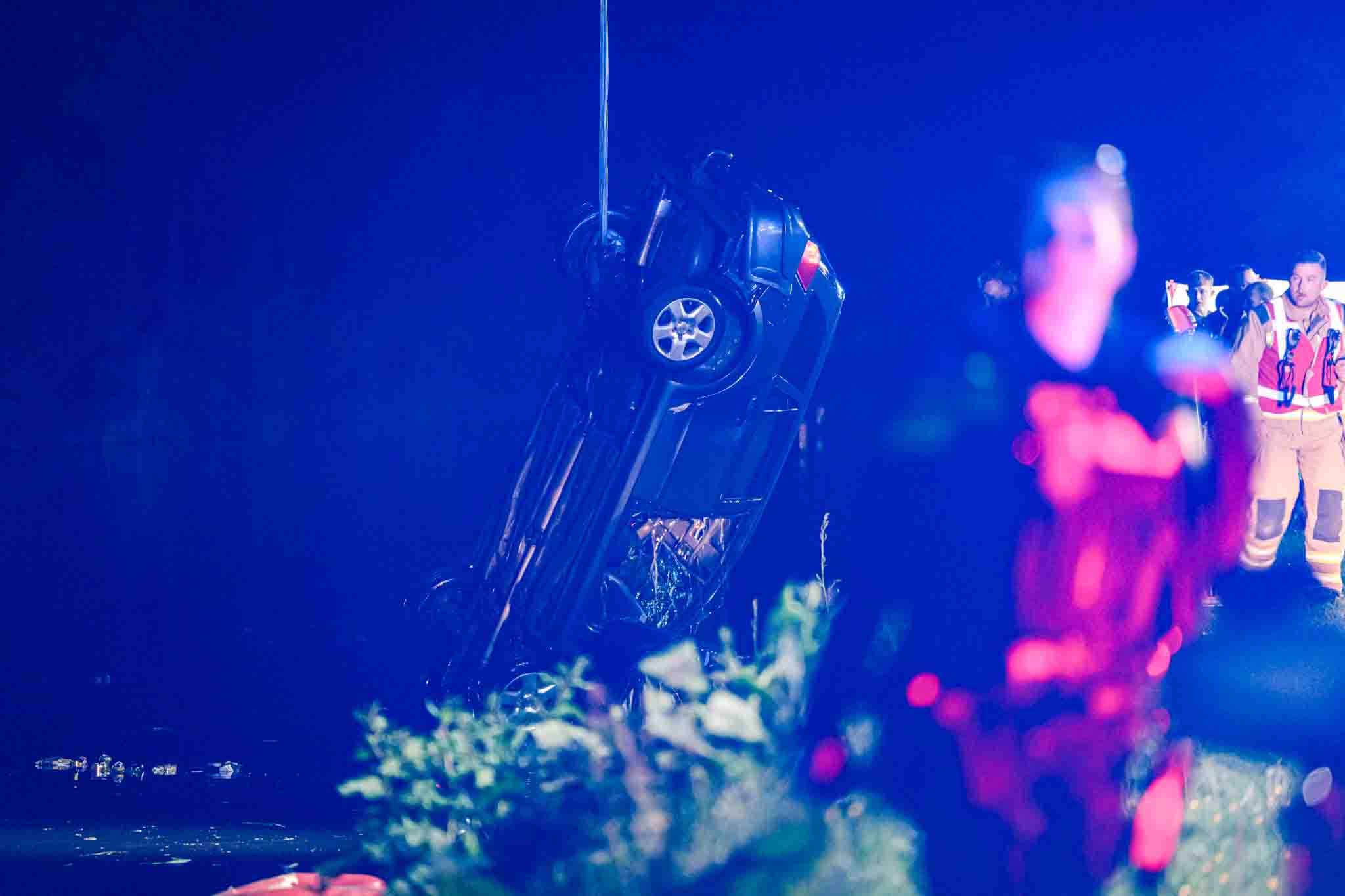 De auto is door de brandweer met een kraan uit het water gehaald. De politie onderzoekt de toedracht van het ongeval. De weg is voorlopig afgesloten.