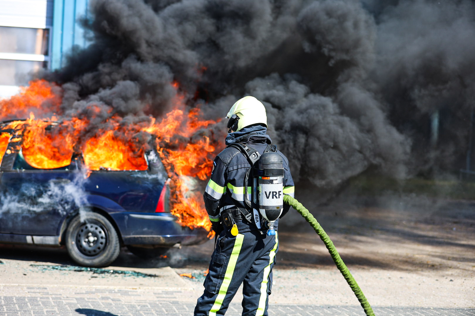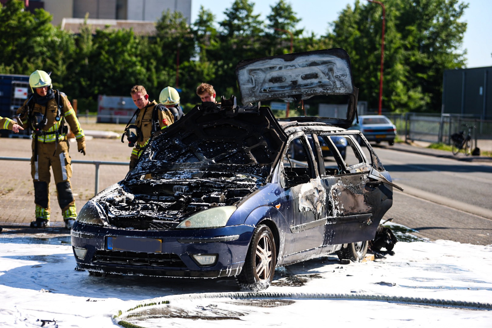 De brandweer had het vuur snel onder controle, maar de auto moet als verloren worden beschouwd.