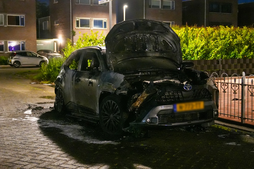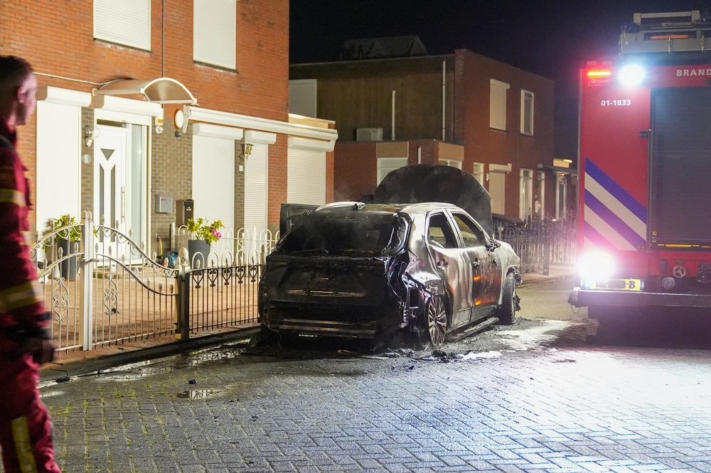 Metershoge vlammen sloegen uit het geparkeerde voertuig. De brandweer had het vuur snel onder controle, maar de auto raakte grotendeels verwoest.