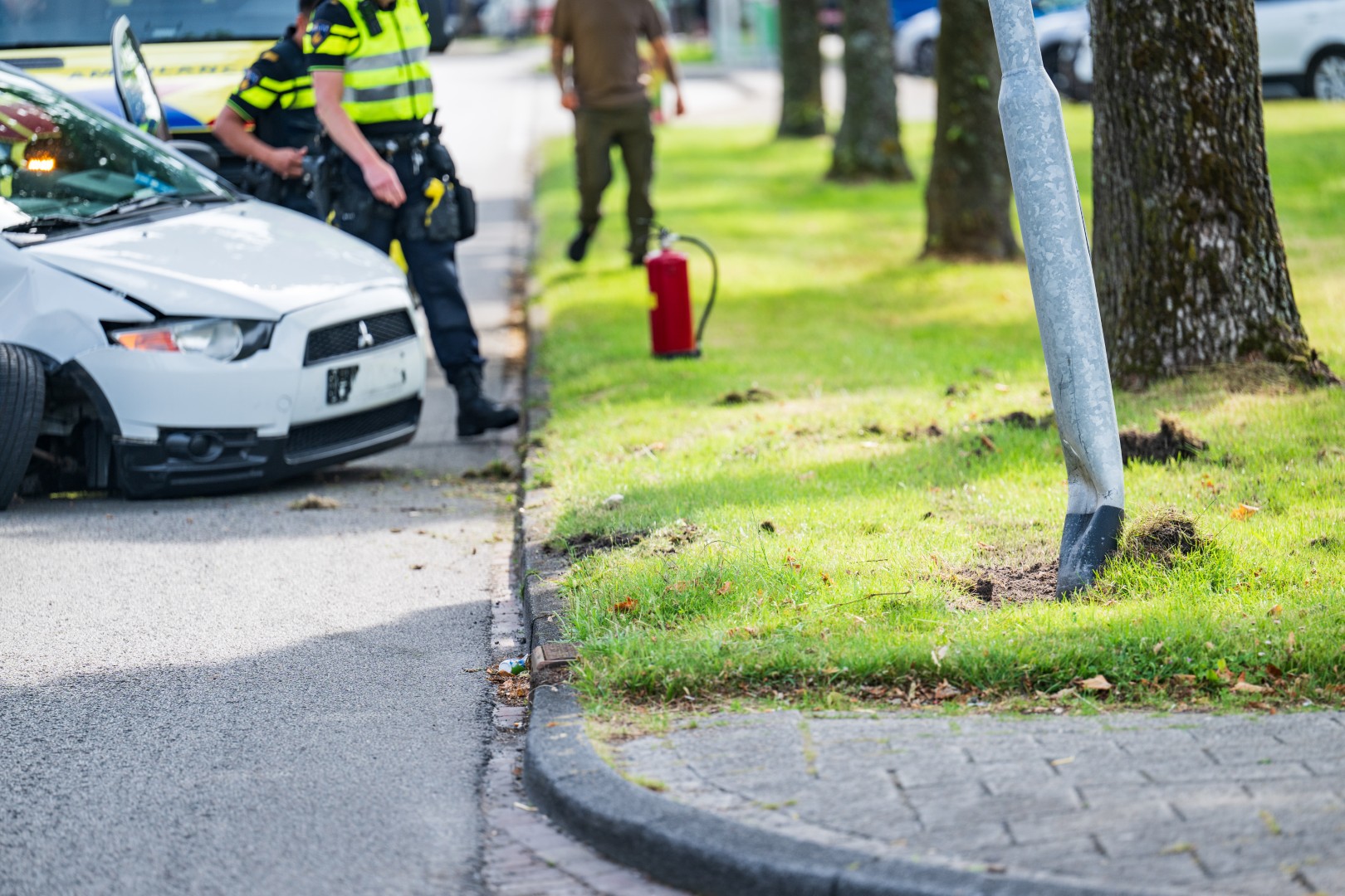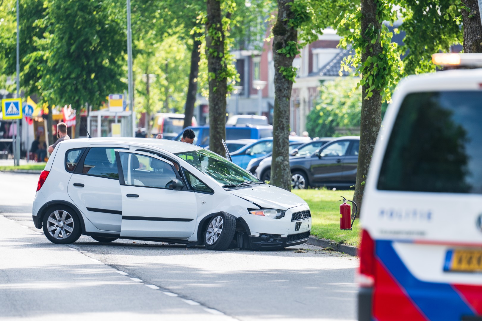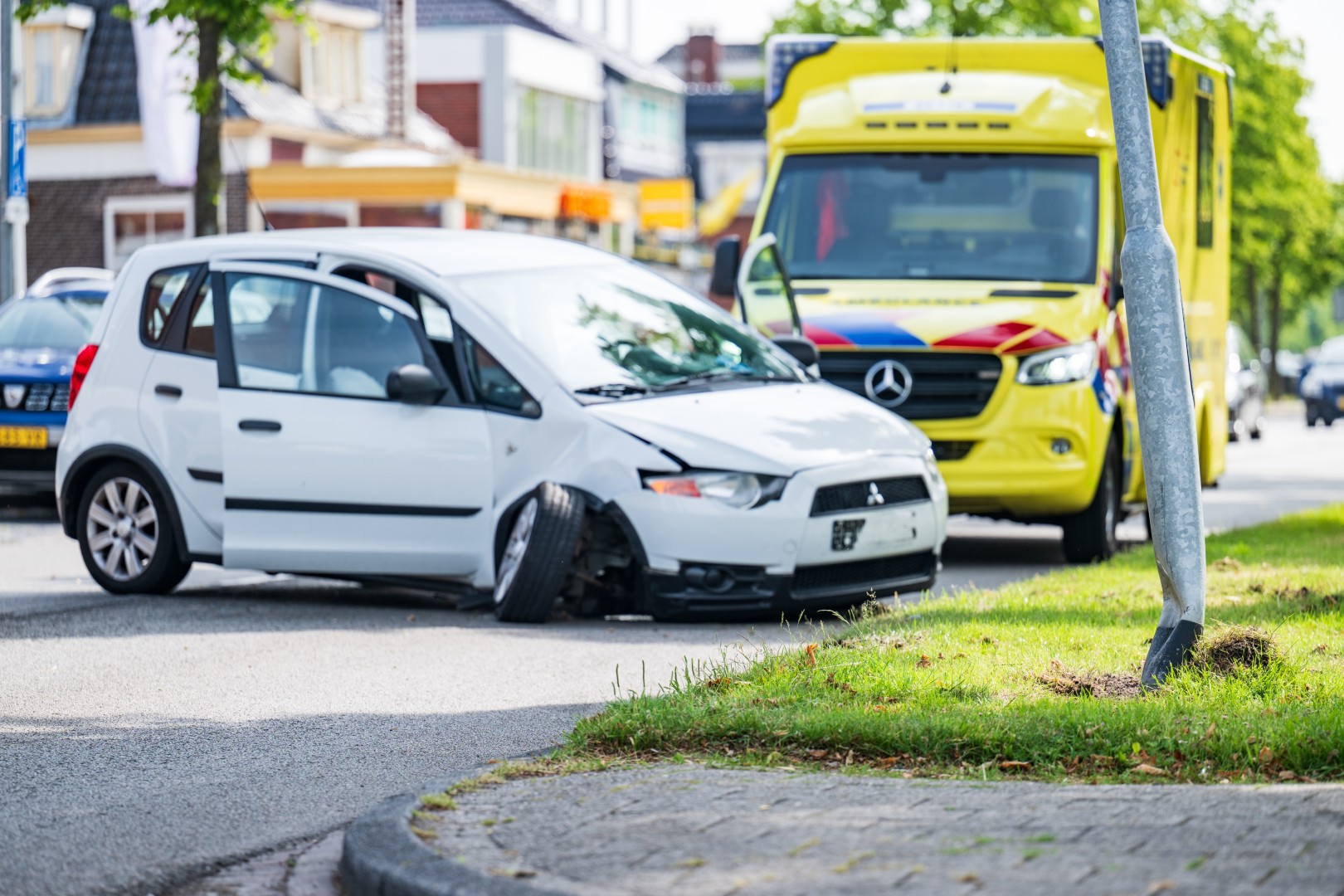 Automobilist ramt boom en lantaarnpaal op Hoofdstraat
