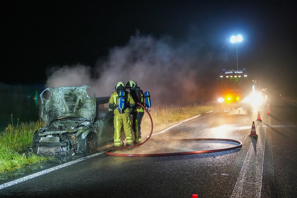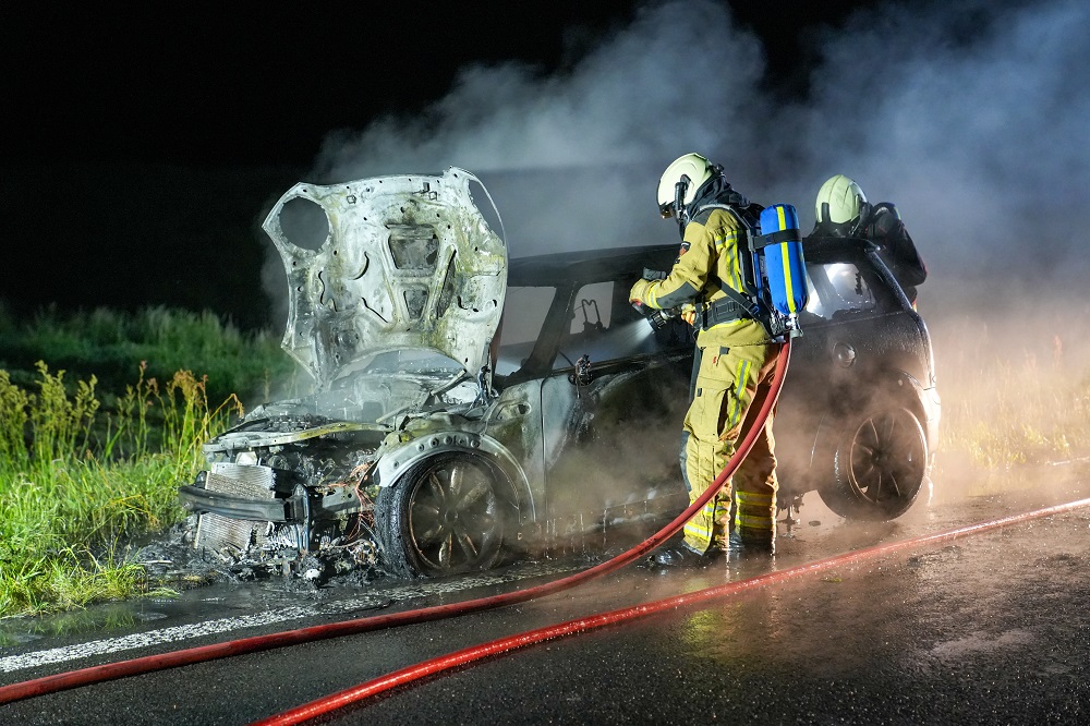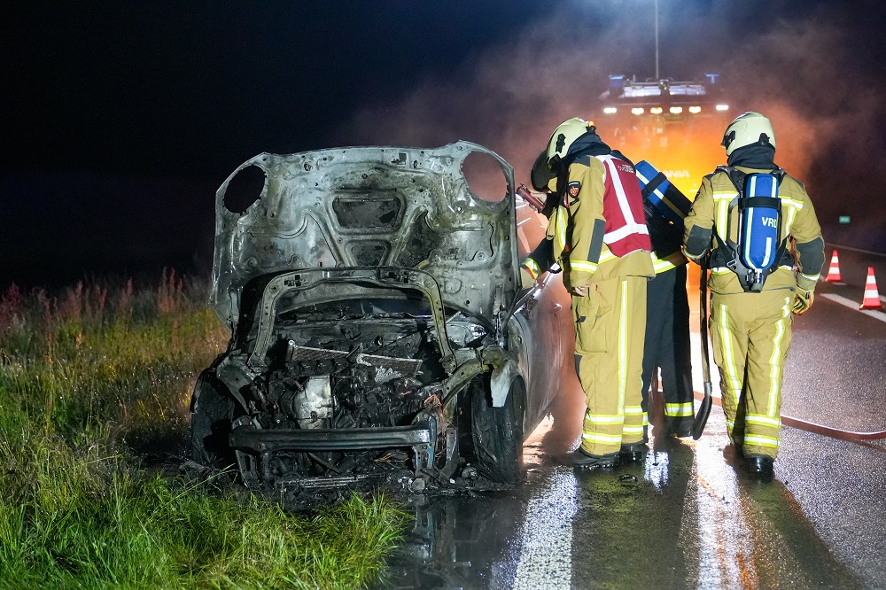 De brandweer bluste de vlammen, maar van de auto bleef weinig over. De bestuurster bleef ongedeerd. De auto is door een berger afgevoerd.