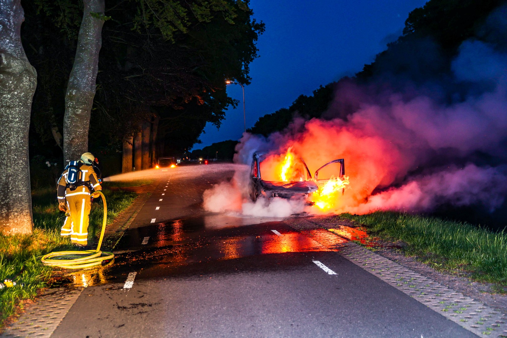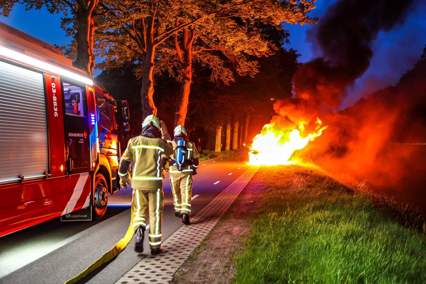 De brandweer van Zwinderen kwam met twee voertuigen ter plaatse. Bij aankomst stond het voertuig al volledig in brand, met metershoge vlammen.