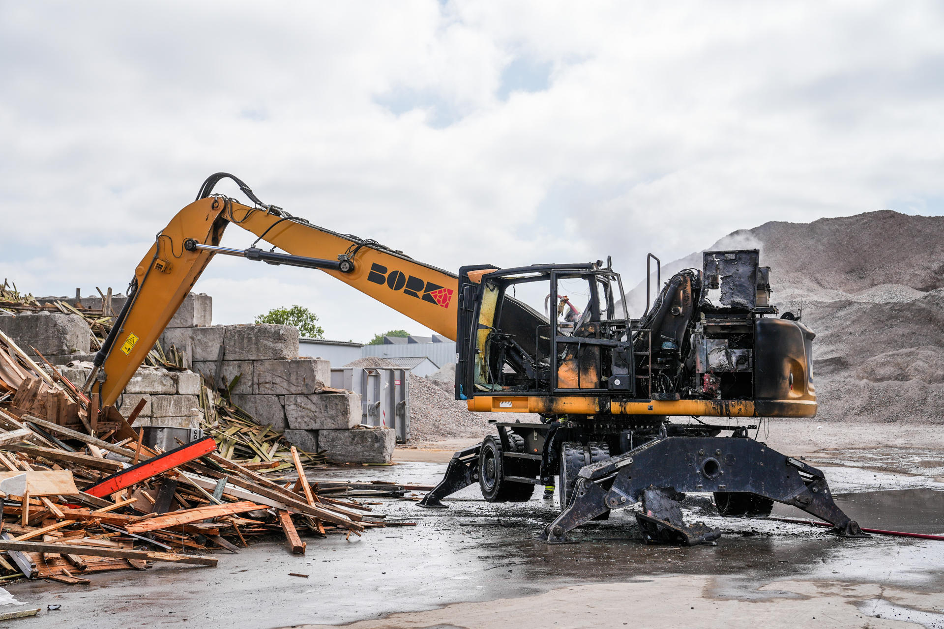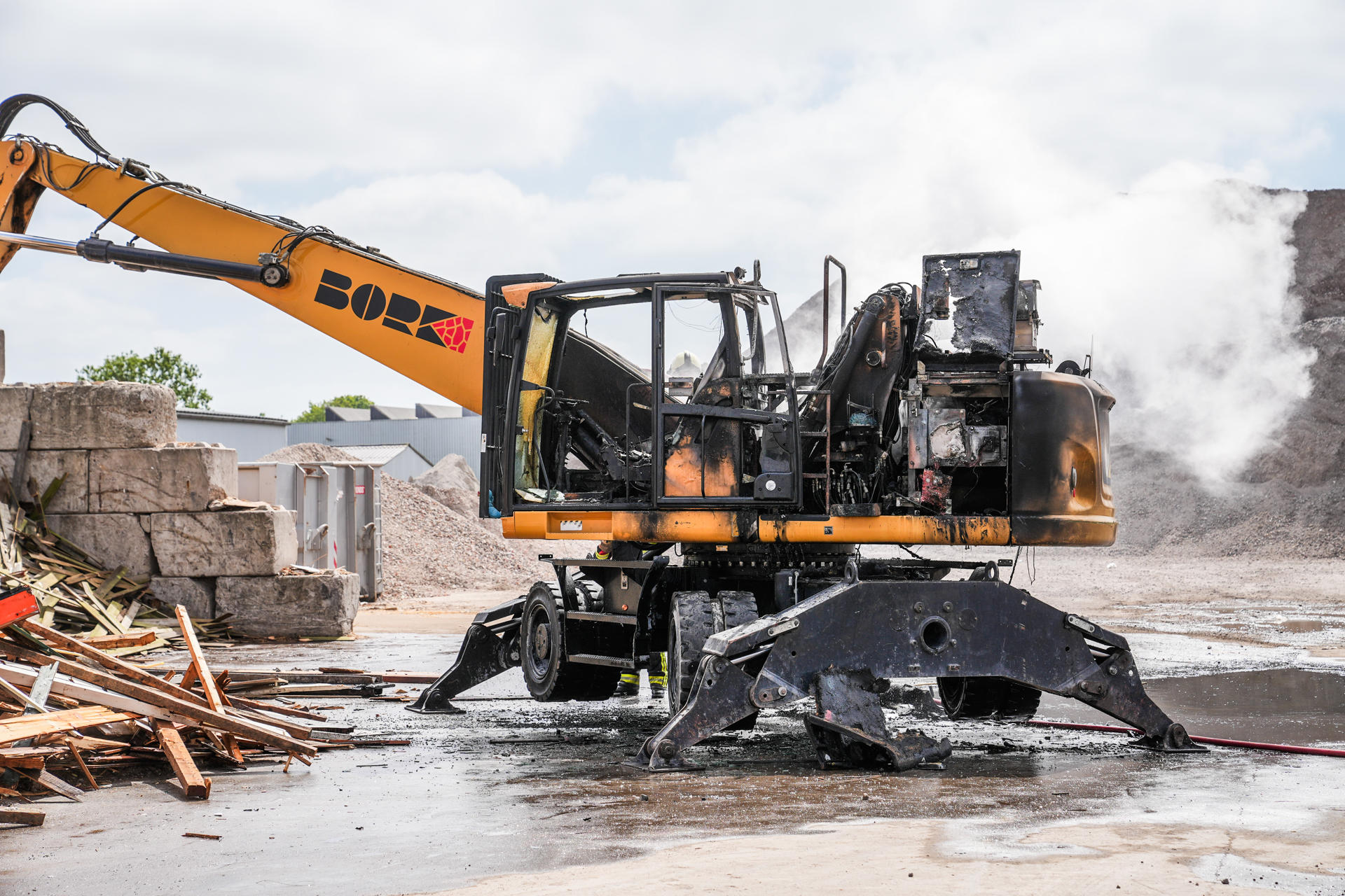 De brandweer rukte met meerdere voertuigen met spoed uit en had het vuur snel onder controle. Desondanks bleef er van de graafmachine weinig over.