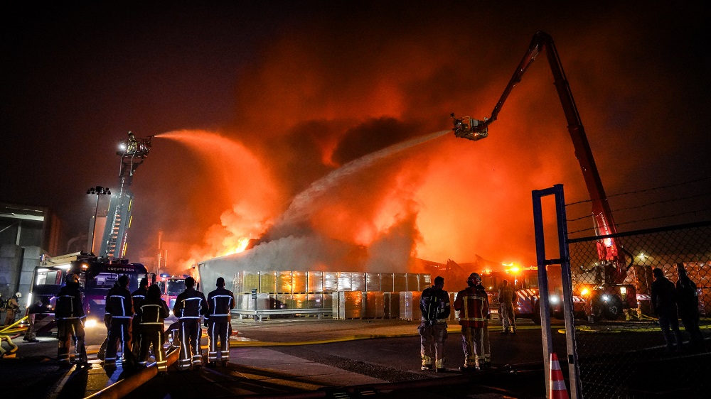 Grote brand in bedrijfsloods, NL-Alert verstuurd