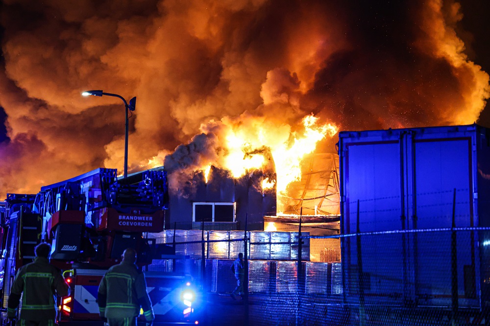 Geplaatst op 19 mei 2025, om 08:10 uurCOEVORDEN – In de nacht van zondag op maandag is rond 03.00 uur een grote brand uitgebroken in een loods van HDF Recycling aan de Marconiweg. De brand werd al snel opgeschaald naar ‘zeer grote brand’ en GRIP 1 werd afgekondigd.