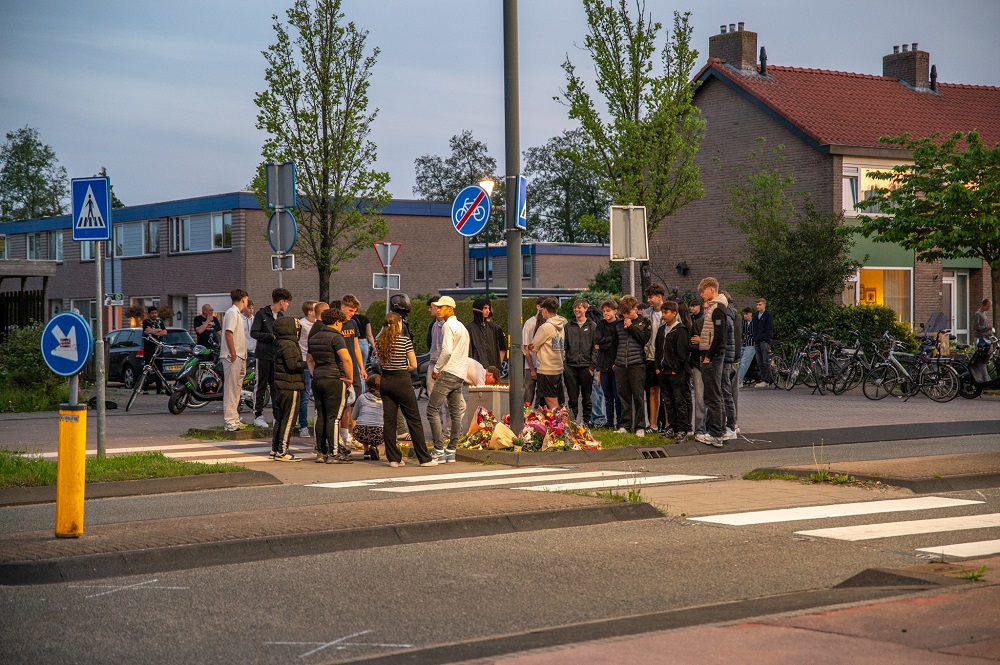 Jongeren leggen bloemen neer voor overleden scooterrijder