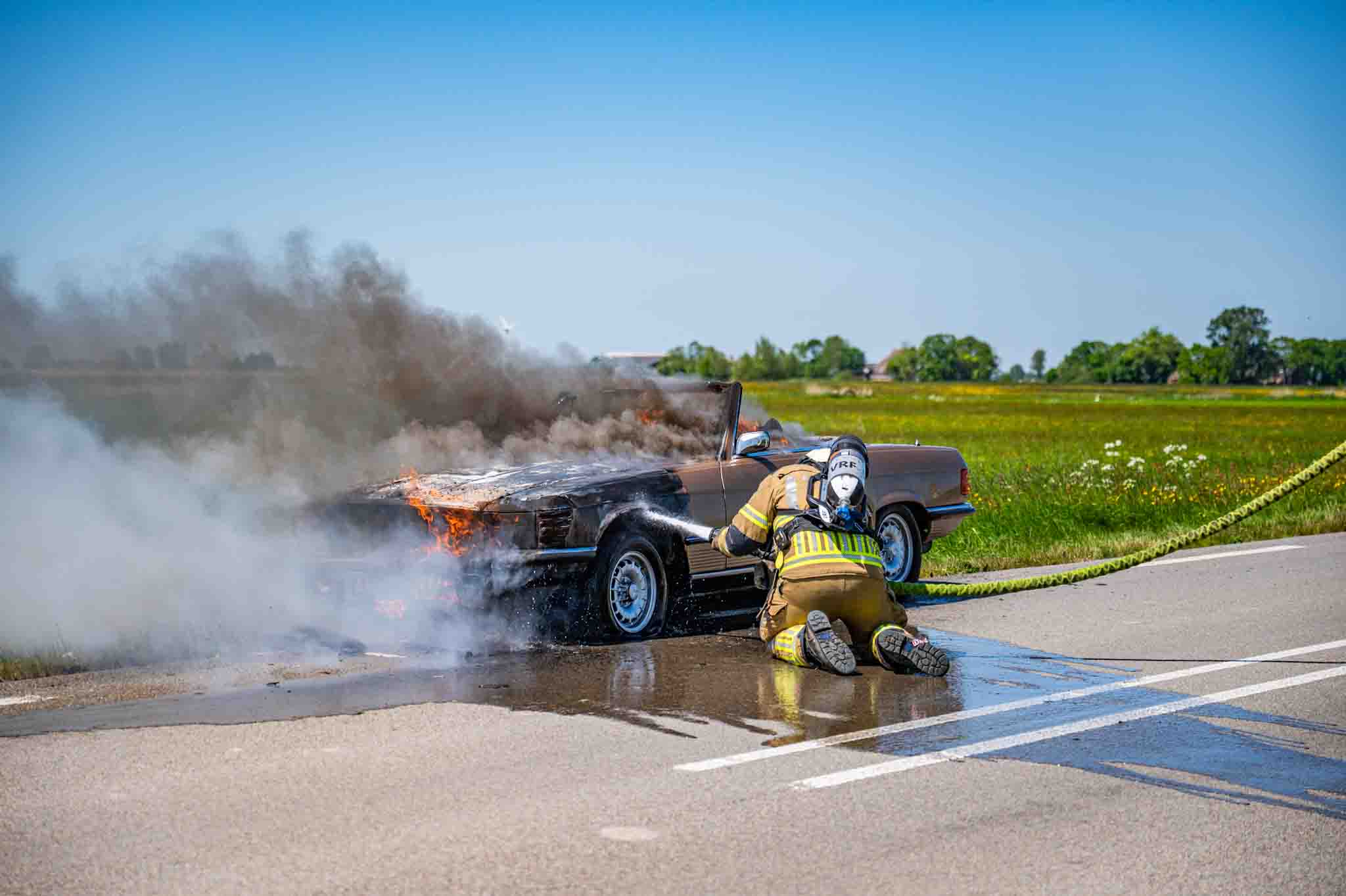 De bestuurder kon het voertuig op tijd verlaten en bleef ongedeerd. Bij aankomst van de brandweer stond de auto al volledig in brand. Het vuur werd snel onder controle gebracht, maar de oldtimer was niet meer te redden.