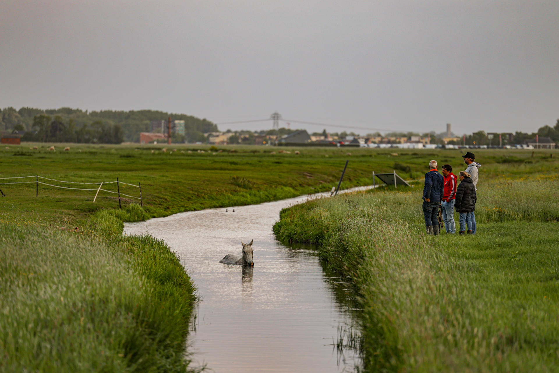 Na de redding is het paard herenigd met de andere paarden. Het dier leek ongedeerd.