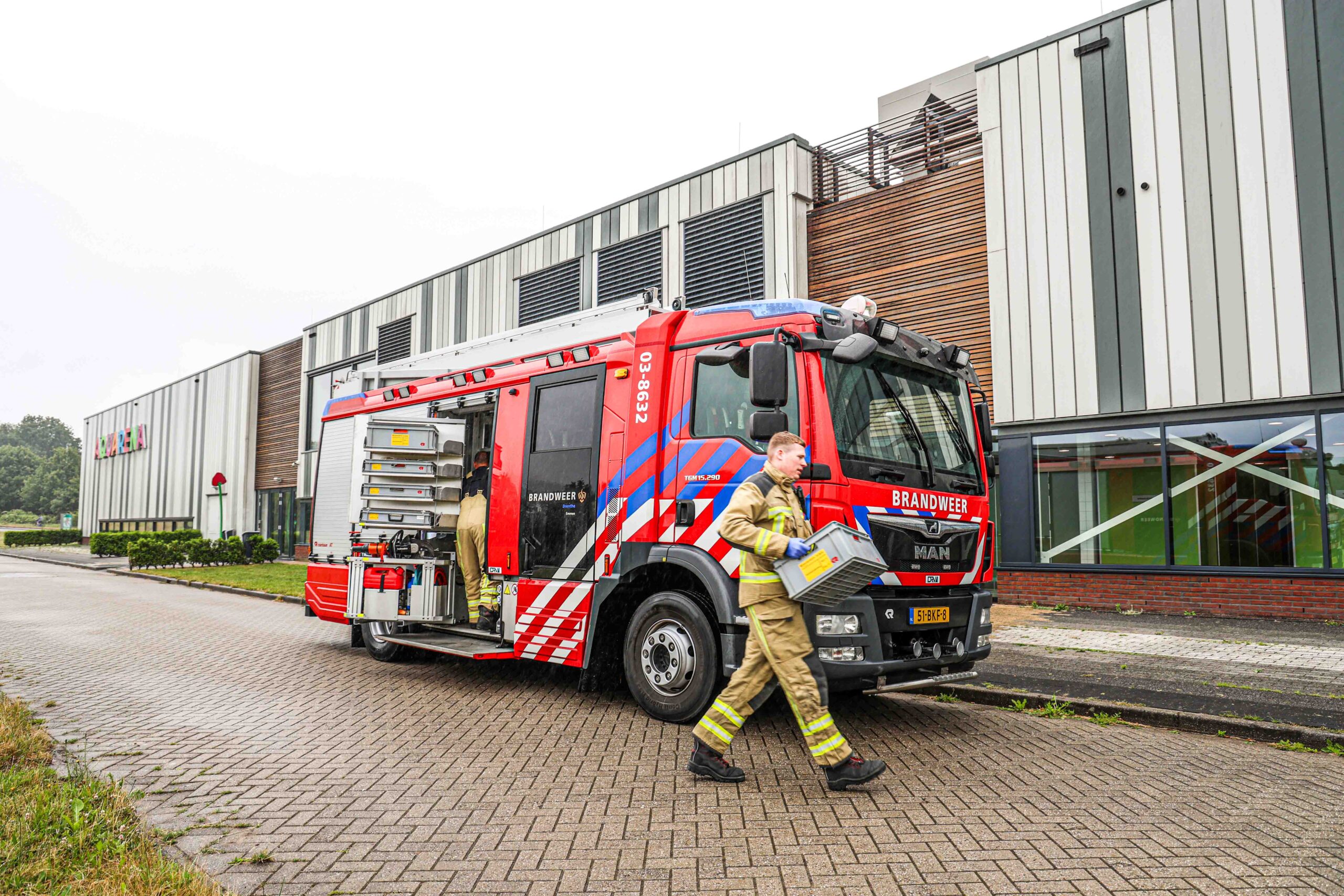 Geplaatst op 29 mei 2025, om 21:30 uurEMMEN – Donderdag heeft zich een incident voorgedaan bij de kleedruimtes van het Aquarena zwembad aan het Stadionplein in Emmen. Een persoon raakte bekneld, waarop brandweer en politie met spoed ter plaatse kwamen.