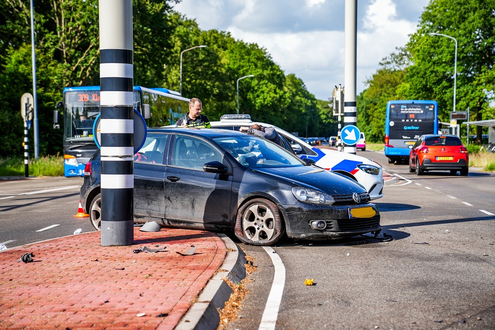 De auto kwam dwars op de kruising tot stilstand. Politie en ambulance kwamen met spoed ter plaatse. De kruising is grotendeels afgesloten, wat zorgt voor aanzienlijke vertraging in de avondspits.