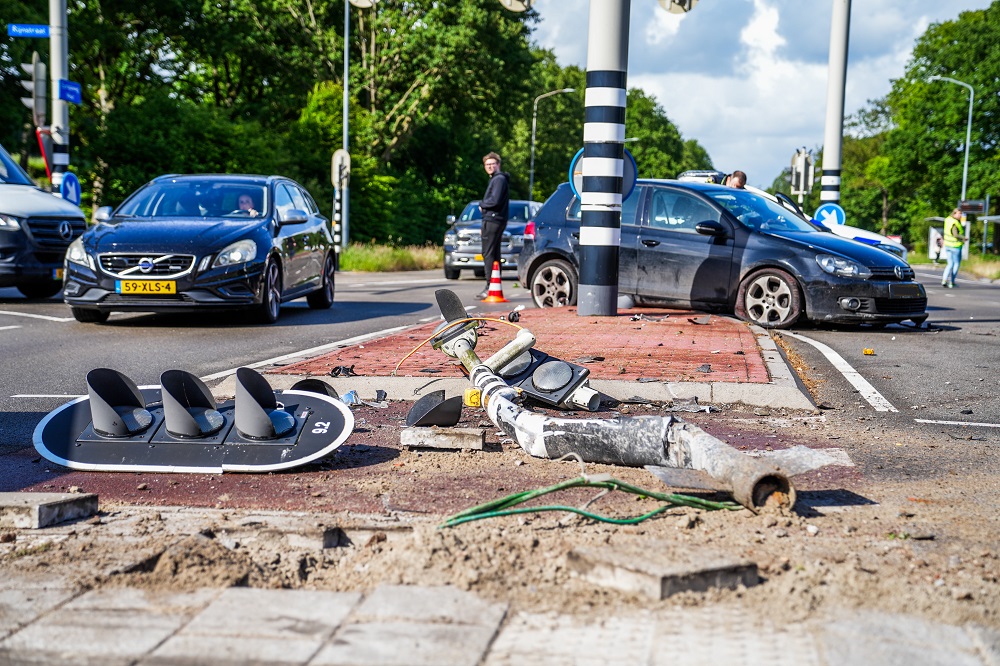 Ravage nadat auto tegen stoplicht botst