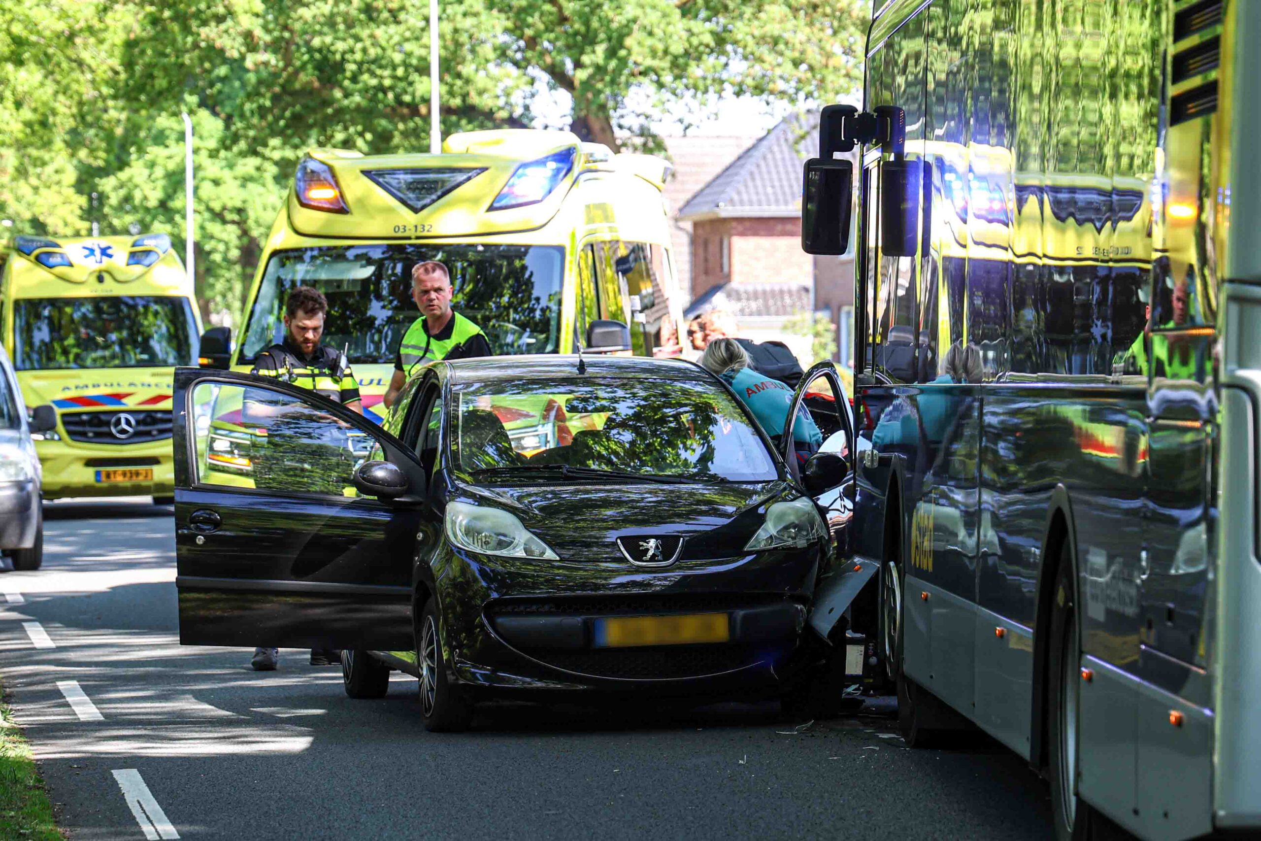 Geplaatst op 14 mei 2025, om 18:36 uurZWARTEMEER – Woensdagmiddag rond 15.30 uur zijn een lijnbus en een personenauto met elkaar in botsing gekomen op de Eemslandweg in Zwartemeer. De oorzaak van het ongeval is nog niet bekend.