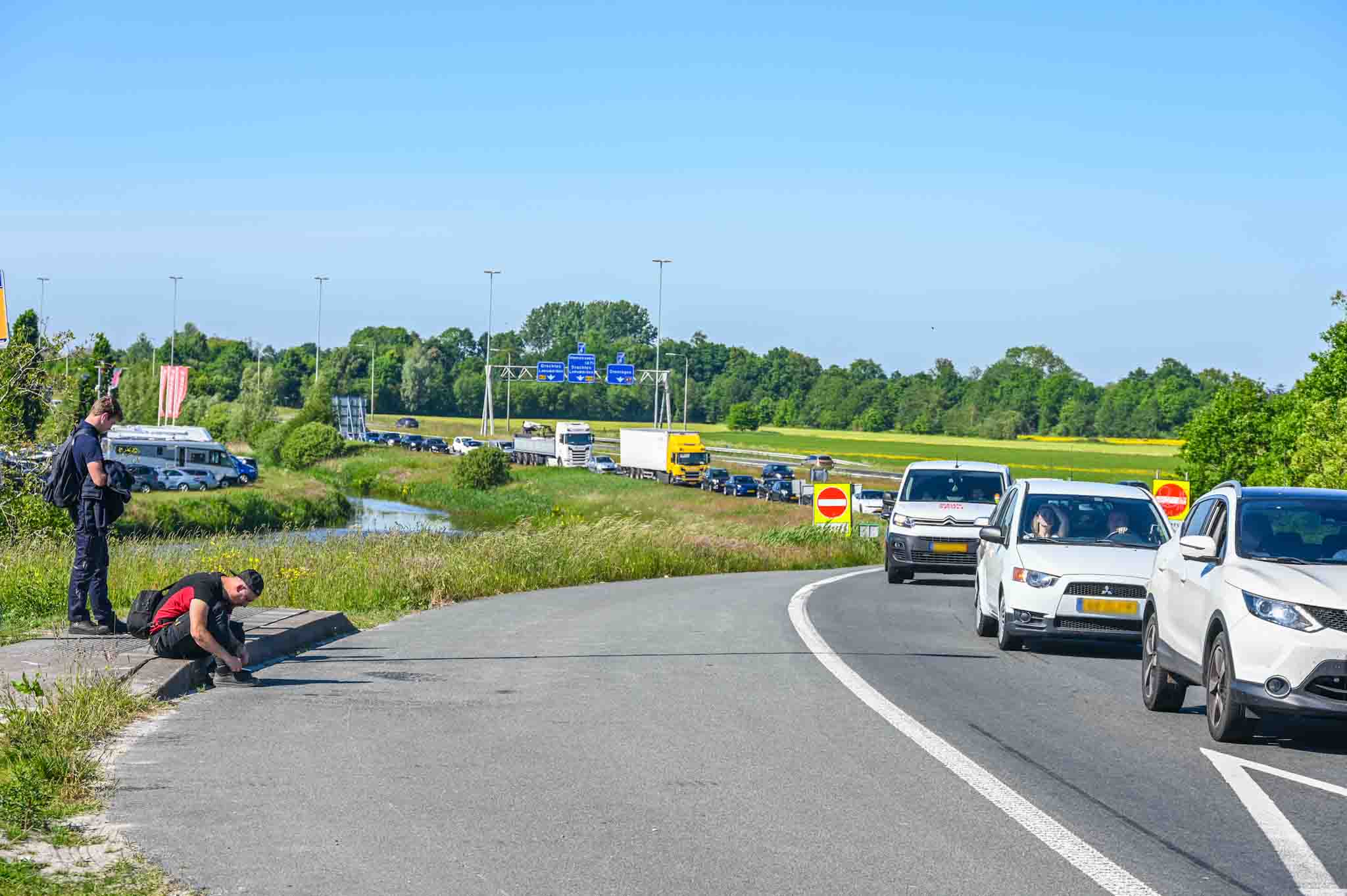 Automobilisten moesten rekening houden met forse vertragingen. Rond het klaverblad ontstonden lange files in beide richtingen.