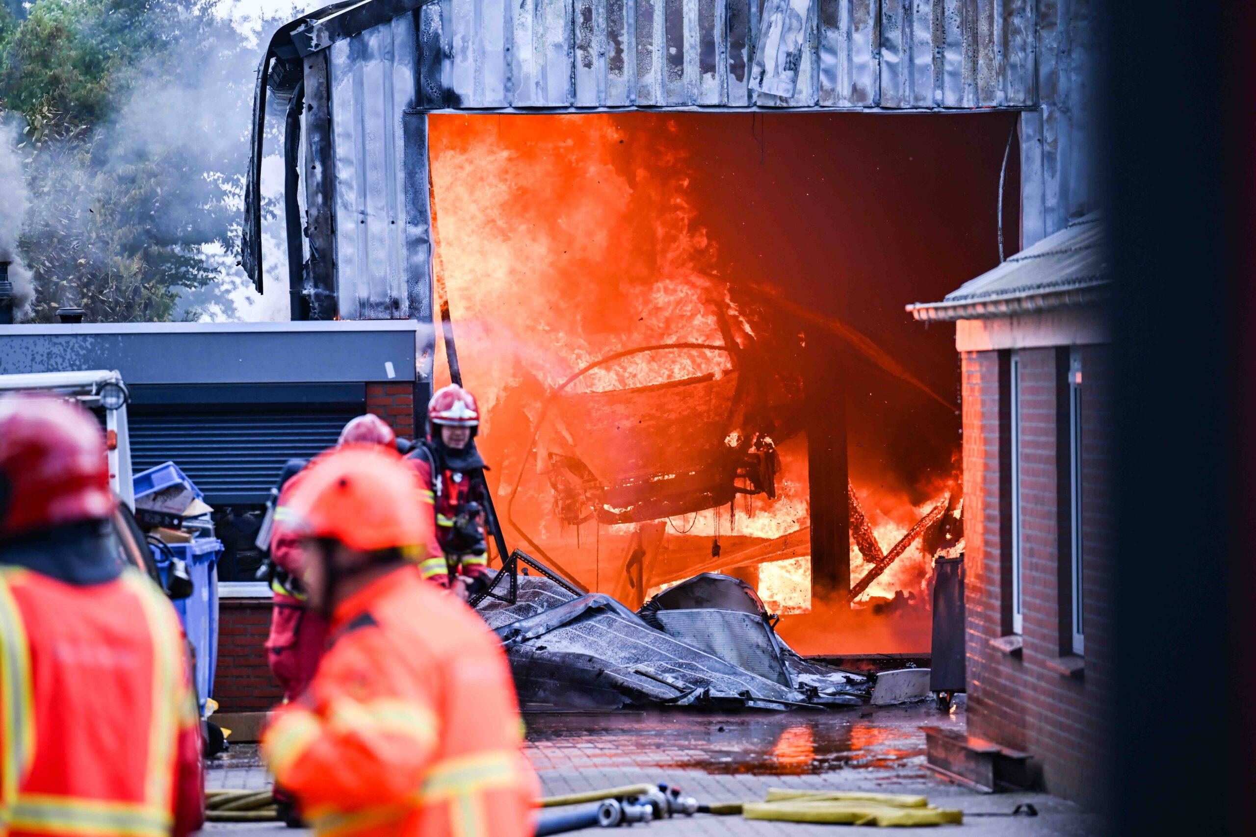 Grote brand in garagebedrijf; loods volledig in vlammen op