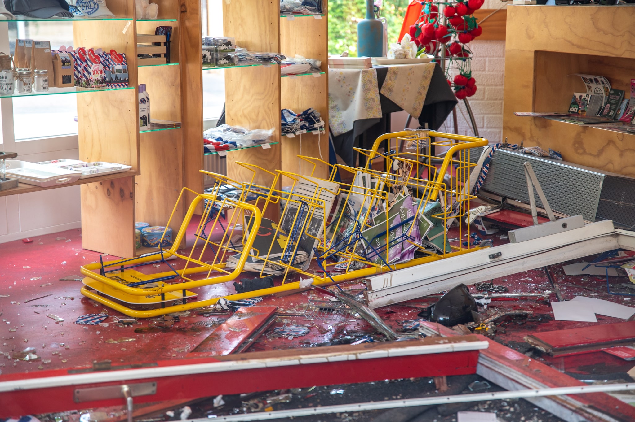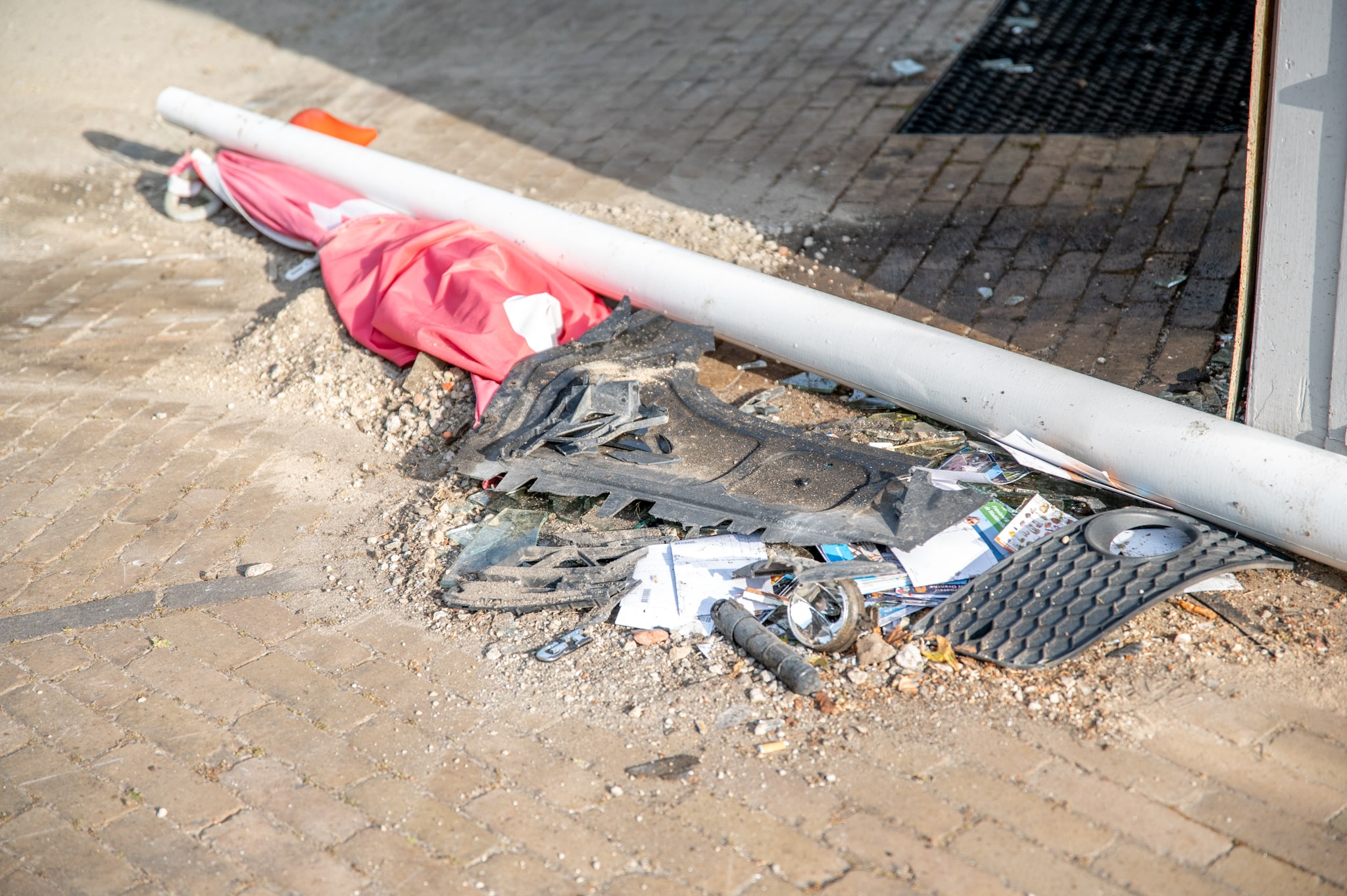 Het gebouw is inmiddels afgedicht en voorlopig niet bruikbaar. De automobilist is aangehouden, al is nog niet duidelijk waarvoor precies. De politie onderzoekt de toedracht van het ongeval.