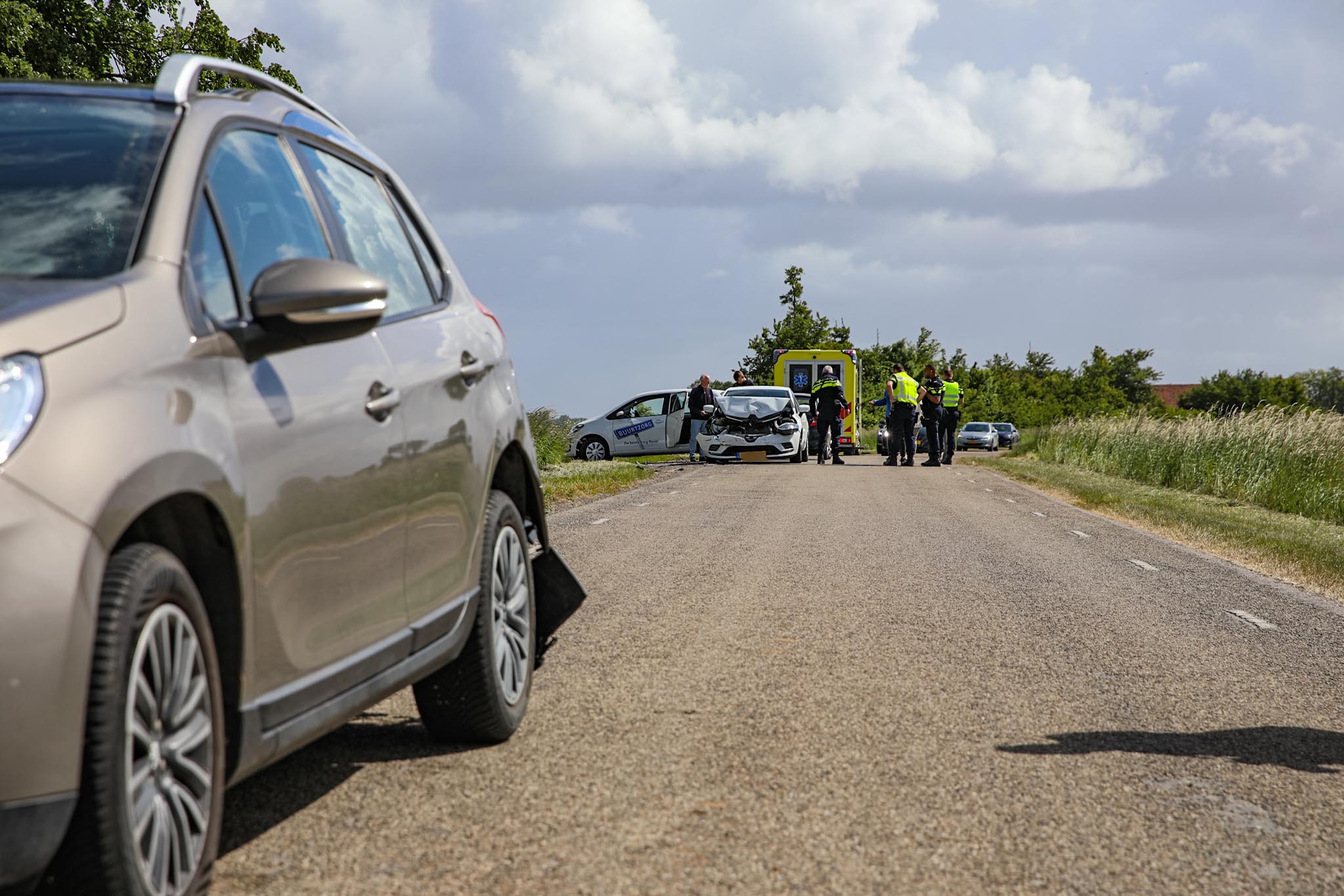 WOLDENDORP – Op de Heemweg in Woldendorp heeft donderdagochtend rond 10.47 uur een forse kop-staartbotsing plaatsgevonden tussen twee personenauto’s. Beide voertuigen liepen aanzienlijke schade op en zijn later afgesleept door een bergingsbedrijf.