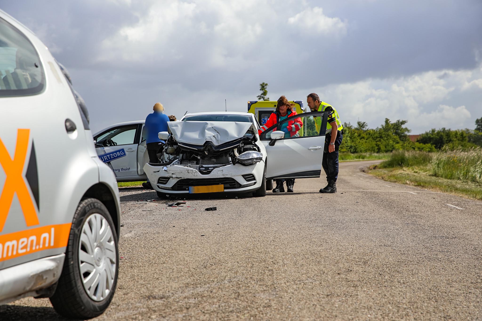 In de witte auto zat een jonge vrouw, in de grijze auto een oudere man. Beiden werden ter plaatse gecontroleerd door het ambulancepersoneel en vervolgens overgebracht naar het ziekenhuis voor verdere behandeling.