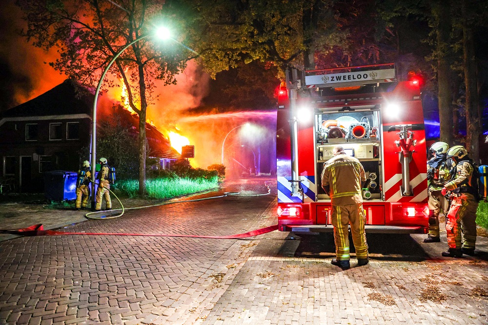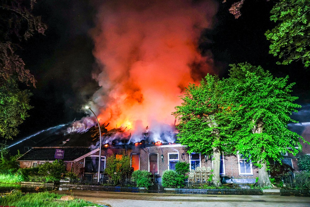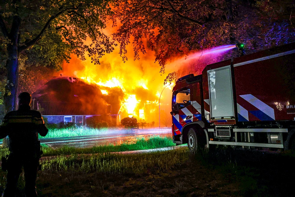 Vlammenzee legt woonboerderij met rieten dak in de as